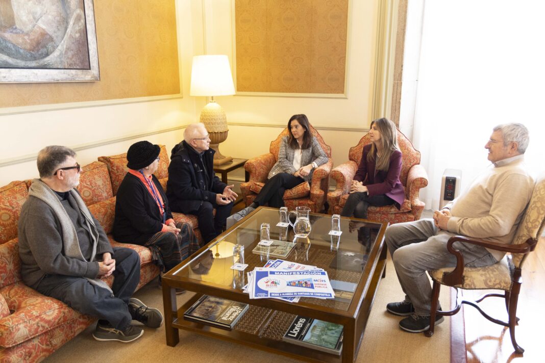 A alcaldesa, Inés Rey, e a concelleira de Benestar Social, Participación e Igualdade, Nereida Canosa, recibiron esta mañá á plataforma SOS Sanidade Pública Galicia, que alertou do impacto das listas de espera e da crecente derivación á privada.