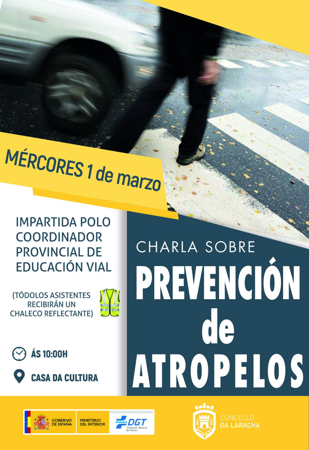 O vindeiro día 1 de marzo a partir das 10:00 horas o coordinador provincial de educación viaria da Dirección General de Tráfico (DGT) impartirá na Casa da Cultura da Laracha unha charla sobre prevención de atropelos.