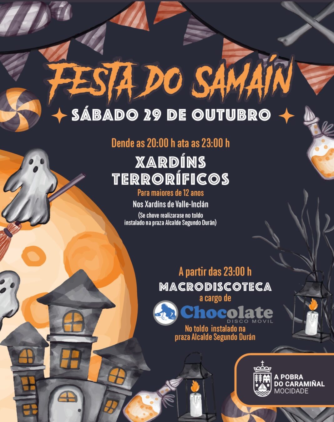 O Concello da Pobra do Caramiñal incrementa as propostas de lecer para a tempada do outono orientadas á xente nova. Impúlsase así a festa do Samaín para o día 29 de outubro, a partir das 20.00 horas.