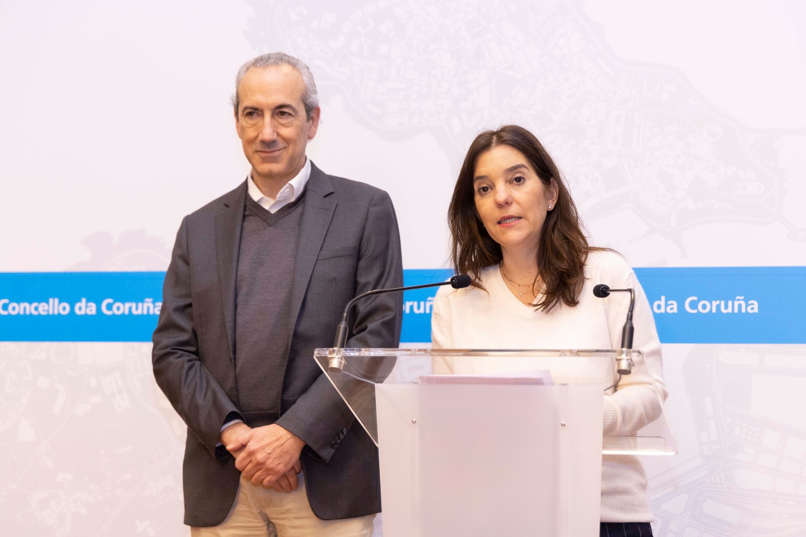 A alcaldesa, Inés Rey, acompañada polo xerente do Consorcio para a Promoción da Música, Juan Antonio Cuéllar, presentou hoxe os detalles do novo orzamento para o 2026 da institución que xestiona a OSG. A rexedora tamén estivo acompañada polo concelleiro de Cultura e Turismo, Gonzalo Castro. As contas do 2026 foron aprobadas esta mañá na Xunta de goberno da entidade, que preside a alcaldesa. O consorcio contará este ano cos orzamentos máis elevados da súa historia, cun monto total inicial de case 11,3 millóns de euros, o que supón un incremento de 379.360 euros respecto ao ano anterior. Desta cantidade, 4 millóns serán achegados polo Concello, que se consolida como o seu principal apoio financeiro. O resto sairá de achegas da Xunta e da Deputación.