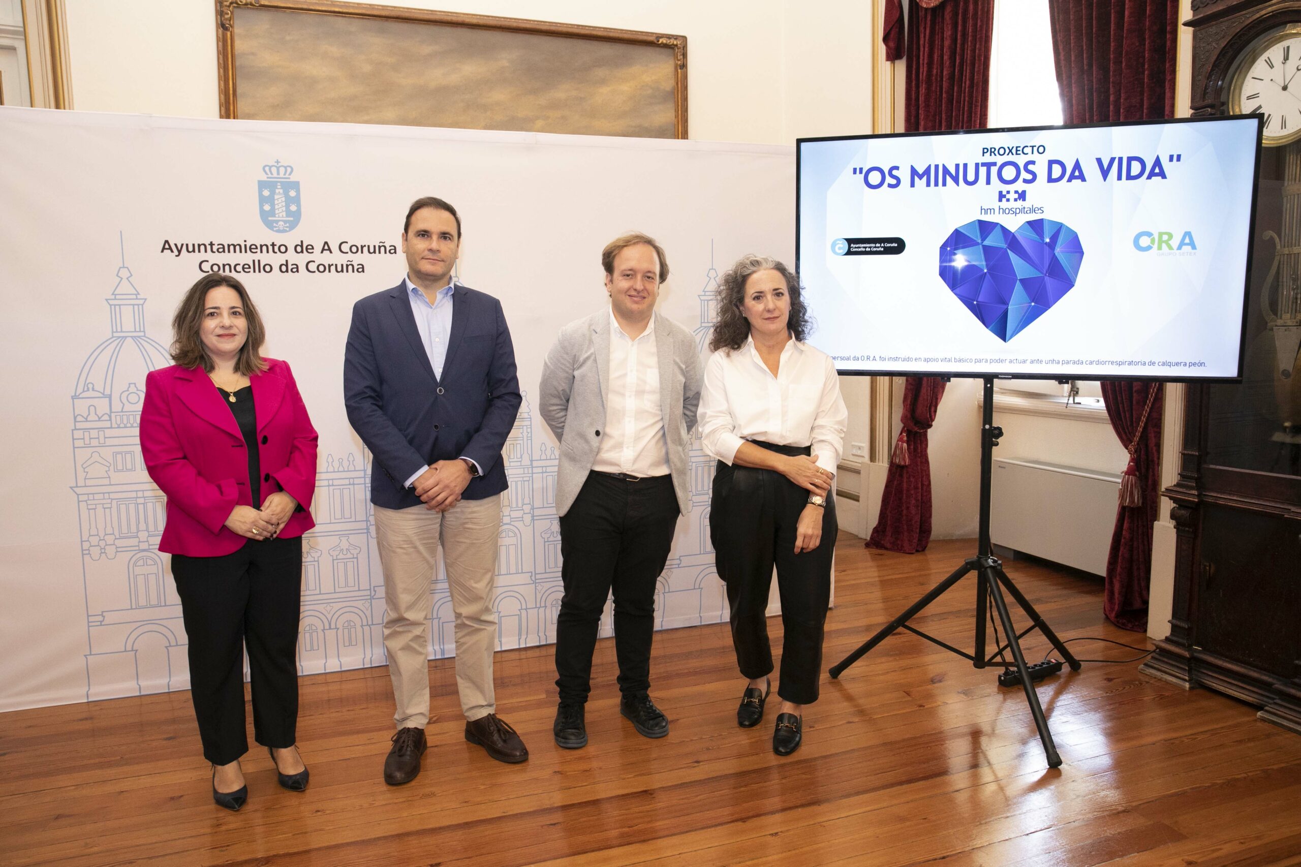A iniciativa ‘Os minutos da vida’ foi presentada hoxe polo concelleiro de Urbanismo, Vivenda, Infraestruturas e Mobilidade, Francisco Díaz Gallego, que estivo acompañado por Pilar Múgica, directora médica de HM Hospitales en Galicia. Tamén asistiron José Luis Molinero, director de delegacións de SETEX-APARKISA, e Ana Trabada, xerente da delegación da Coruña de SETEX APARKISA. “Temos a necesidade de facer chegar a toda a sociedade técnicas e formación sanitaria que salven vidas. Todo traballador da Administración debe estar preparado para calquera circunstancia de emerxencia”, sinalou Díaz Gallego, que agradeceu a colaboración de HM Hospitales para levar a cabo o proxecto.