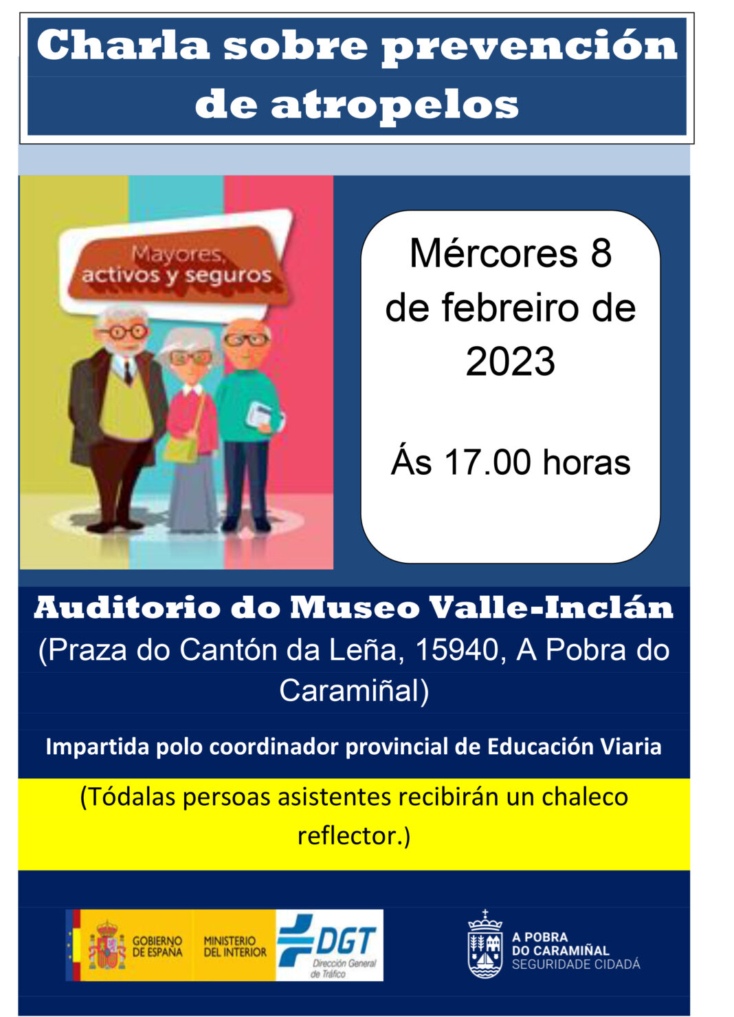 O Auditorio do Museo Valle-Inclán da Pobra do Caramiñal acollerá no 8 de febreiro, a partir das 17.00 horas, unha charla relativa á circulación peonil a cargo do coordinador provincial de Educación Viaria.