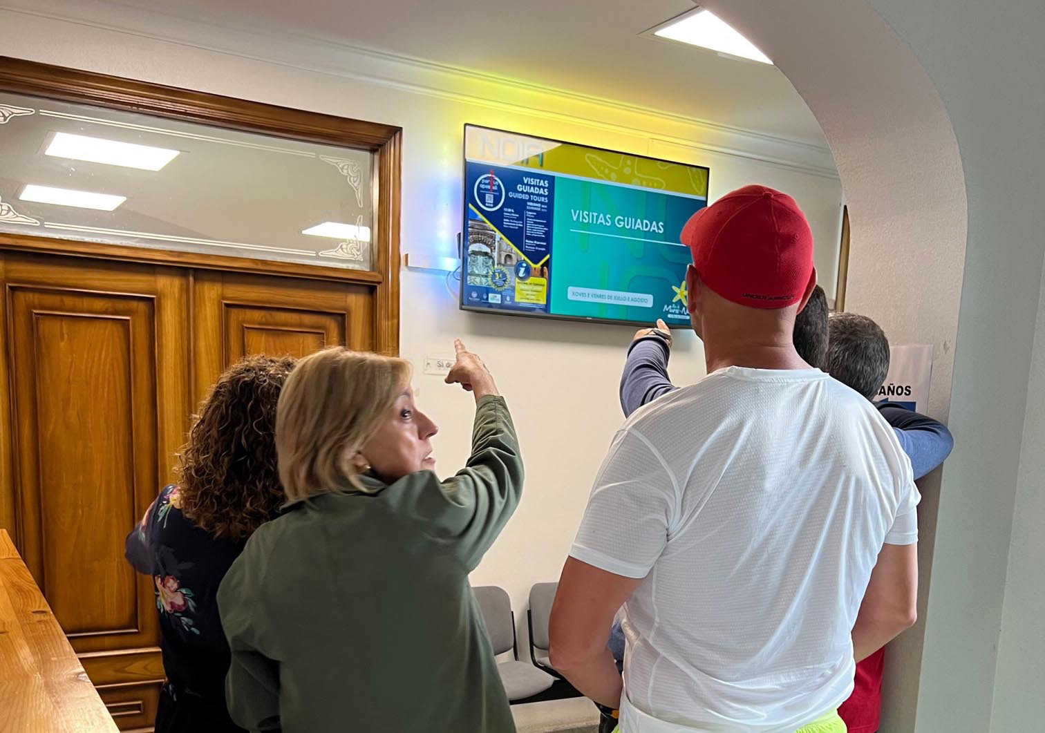 A segunda das medidas adoptadas é o incremento dos puntos de acceso ao canal interno de televisión do Xeodestino Ría de Muros Noia. Durante os últimos meses instaláronse grandes pantallas de televisión en todos os concellos do xeodestino, así como noutros centros de información turística como a antiga fábrica Sel (Muros) ou o museo das Minas de San Finx (Lousame).