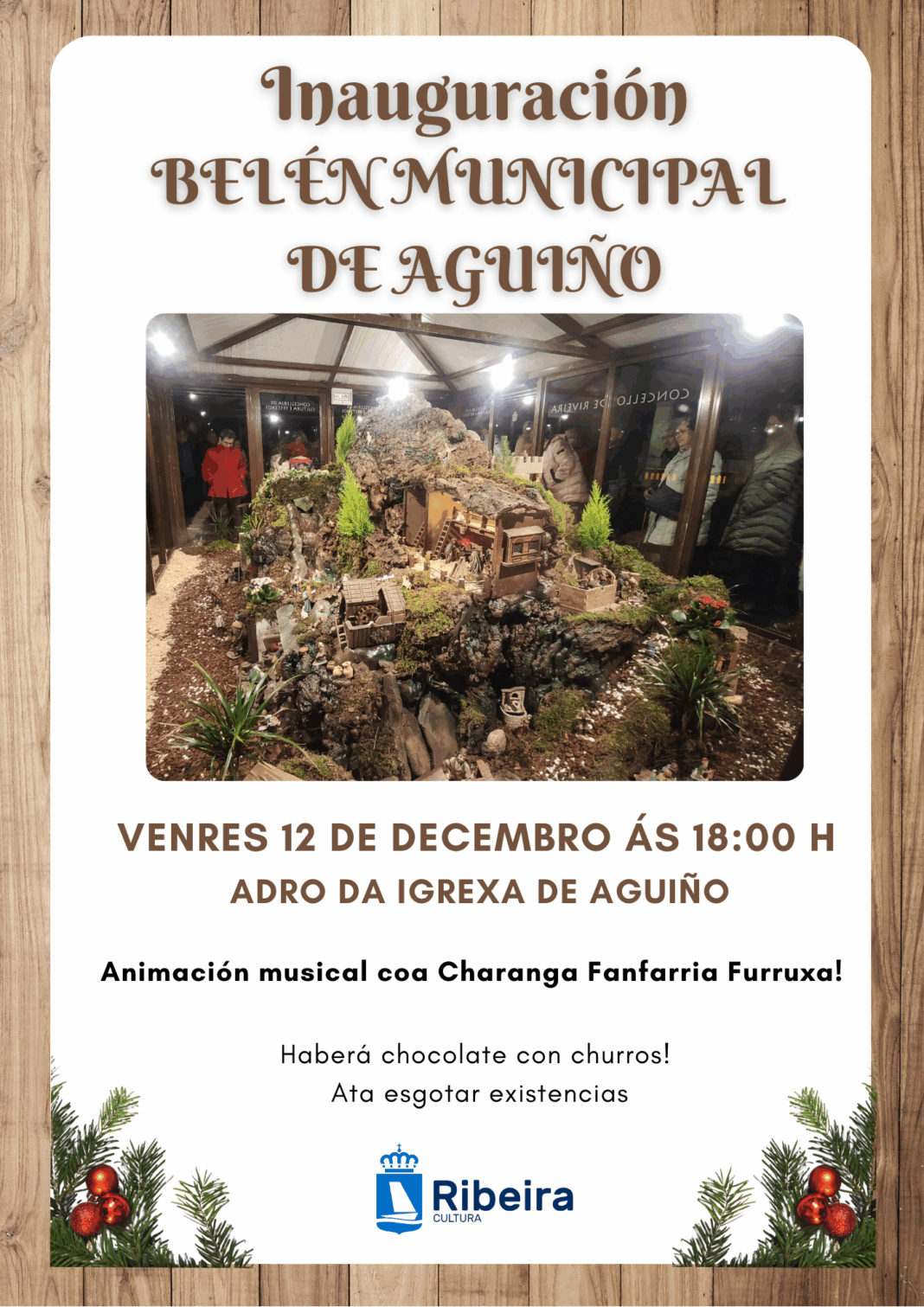 Ribeira continúa inmersa no Nadal e achega unha nova proposta, nesta ocasión, orientada á parroquia de Aguiño. A Concellería de Cultura organiza para o venres, 12 de decembro, ás 18.00 horas, a inauguración do belén municipal de Aguiño no adro da igrexa, onde o párroco bendicirá o nacemento.
