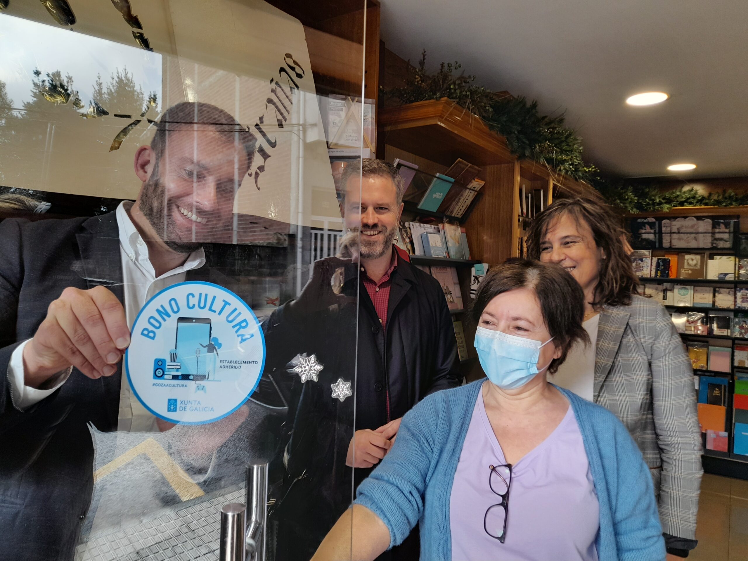 O delegado da Xunta na Coruña, Gonzalo Trenor, visitou esta mañá a libraría Brañas Verdes para animar aos profesionais do sector cultural a adherirse á campaña do Bono Cultura da Xunta que os clientes poderán empezar a disfrutar a partir do 2 de novembro ata o 31 de decembro.