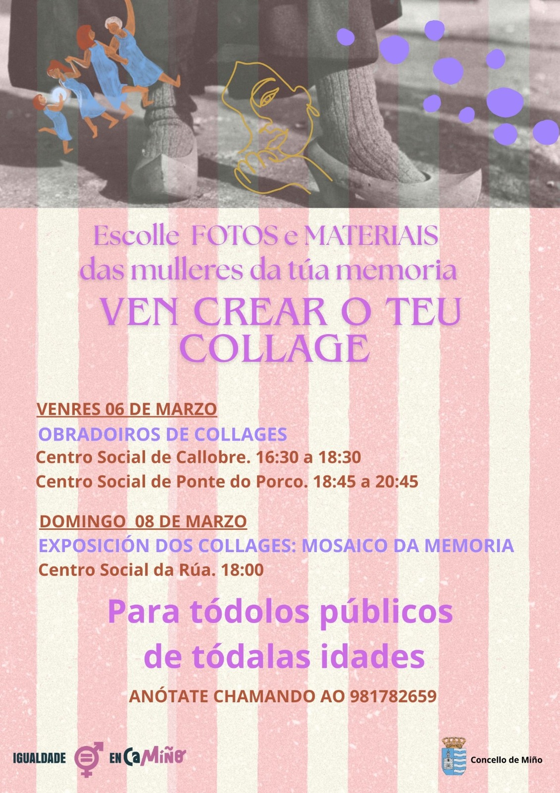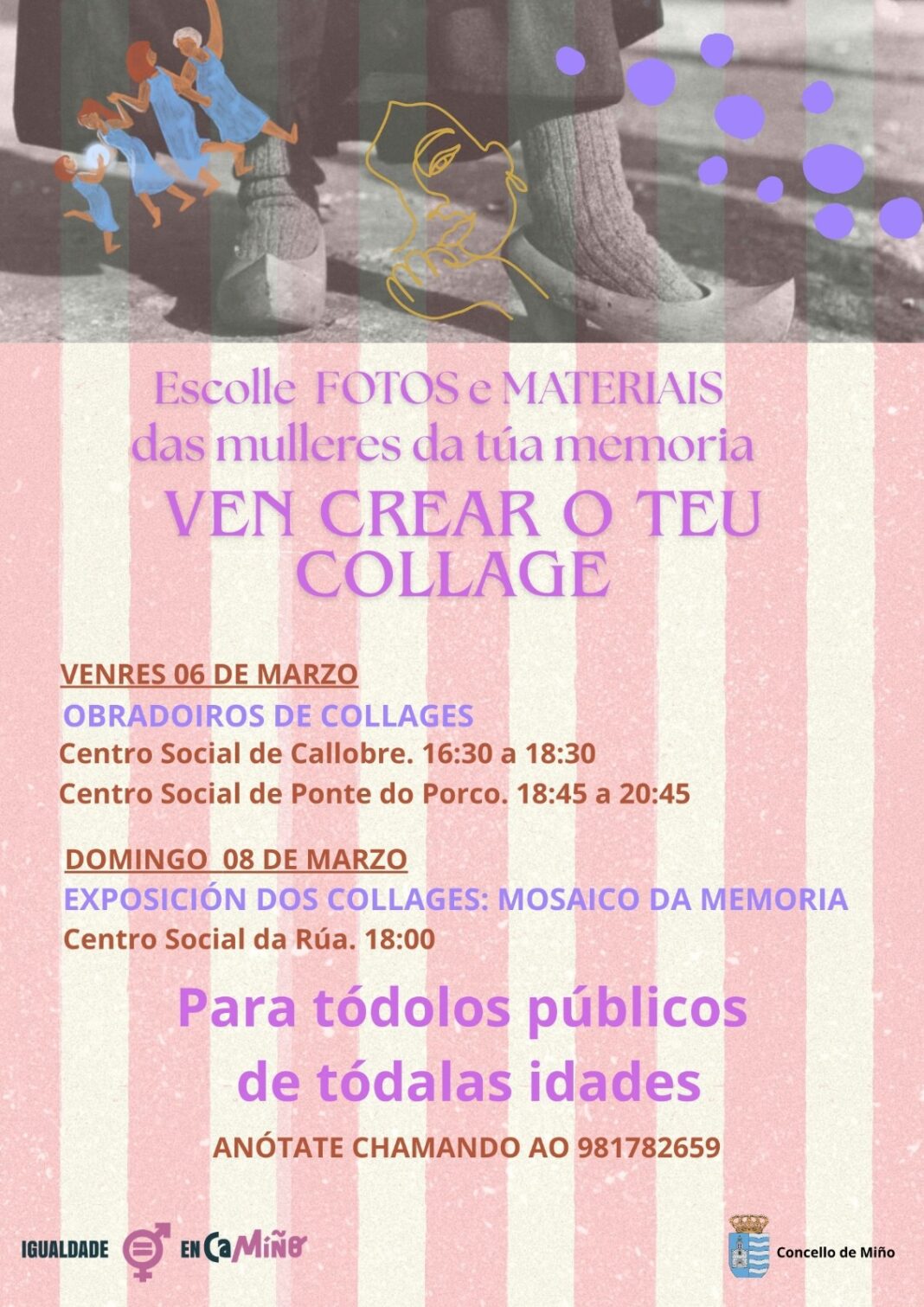 O Concello de Miño organiza o vindeiro venres, 6 de marzo, dous talleres creativos de colaxe en caixas enmarcados na programación municipal do Día Internacional da Muller, conmemorado o 8 de marzo.