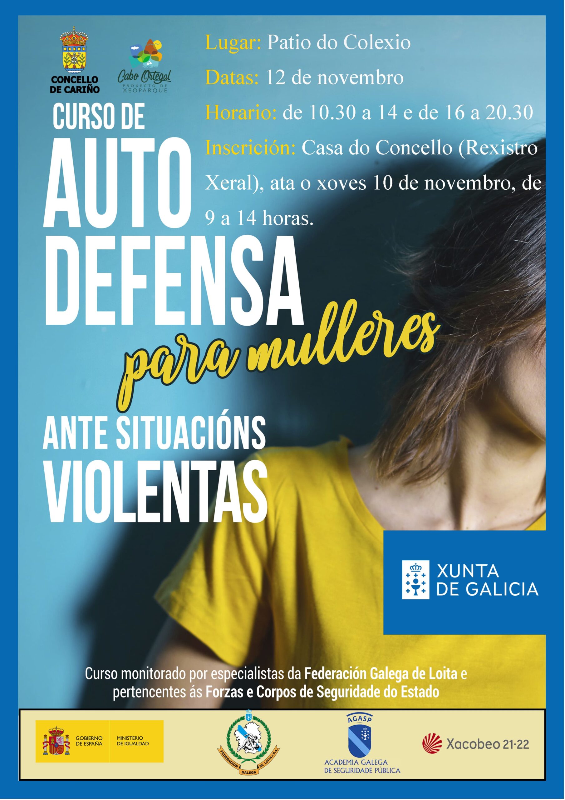 O Concello de Cariño organiza un curso gratuíto de autodefensa para mulleres #ante situacións violentas. Esta actividade, que levará a cabo o sábado 12 de novembro no pato do colexio de Cariño de 10:30 a 14 horas e de 16 a 20:30 horas, está dirixida a mulleres a partir de 16 anos (para menores será necesaria a autorización dos pais).