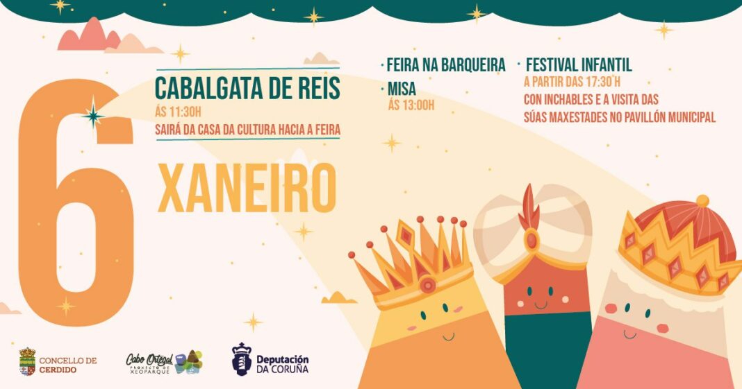 O Concello de Cerdido celebra a súa tradicional Cabalgata de Reis este venres, 6 de xaneiro, en horario de mañá.