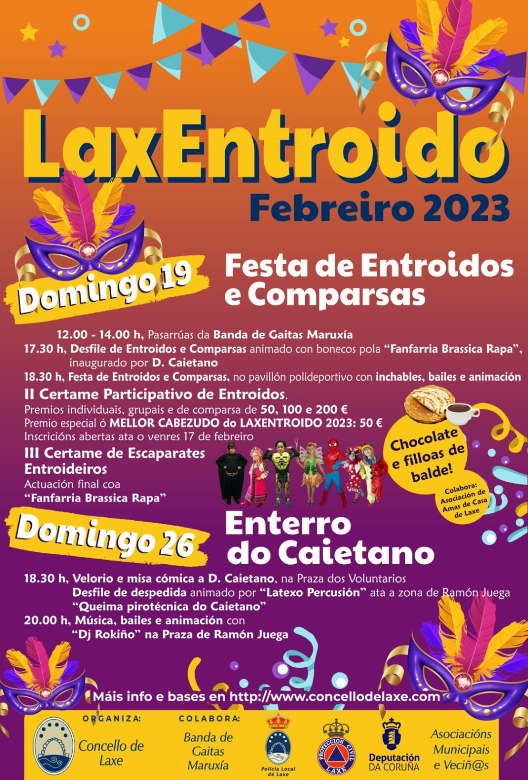 O Concello de Laxe presenta o LaxEntroido, unha programación especialmente deseñada para desfrutar do Entroido por partida doble, xa que as celebracións desenvolveranse os domingos 19 e 26 deste mes.
