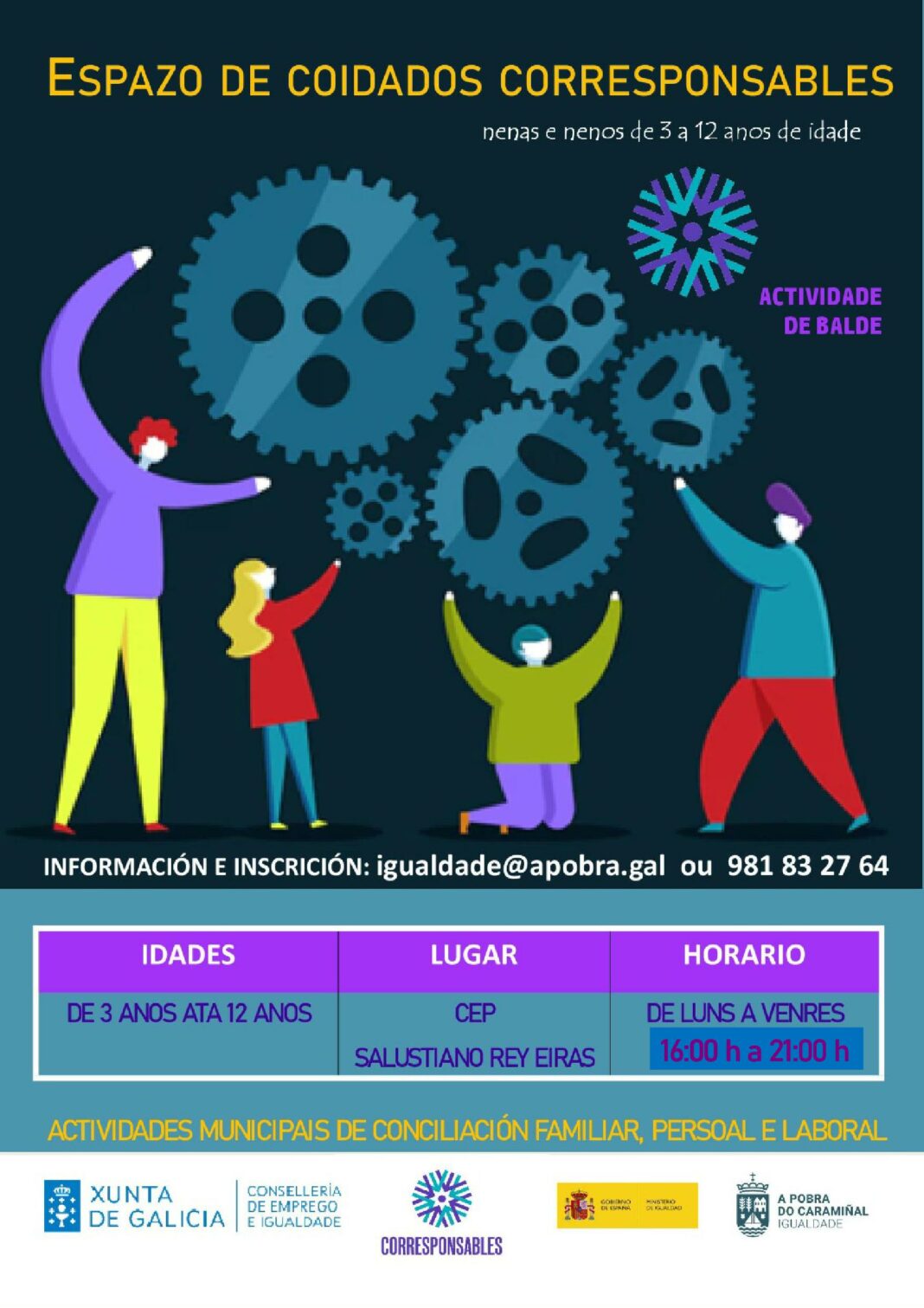 A Pobra do Caramiñal prosegue achegando conciliación nas tardes a través do Espazo de Coidados Corresponsables. Trátase dun servizo municipal de balde ao abeiro do Plan Corresponsables promovido e financiado con fondos procedentes do Ministerio da Igualdade.