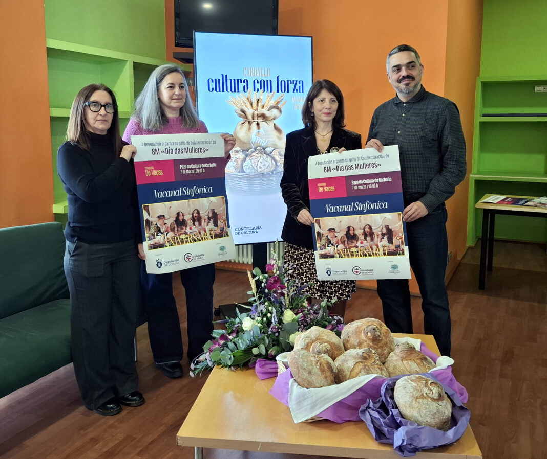 Carballo acolle o sábado 7 de marzo o concerto Vacanal Sinfónica do coñecido grupo galego De Vacas, que ademais de conmemorar o seu décimo aniversario nos escenarios e vir a encher o Pazo da Cultura da mellor música, empregará “o sarcasmo, a ledicia e a diversión”, en verbas da concelleira de Cultura, Maruxa Suárez, para reivindicar a igualdade con motivo do 8M, Día das Mulleres. Suárez estivo na presentación desta actividade acompañada da concelleira de Servizos Sociais e Igualdade, Maica Ures, da deputada de Igualdade de xénero, Sol Agra, e do alcalde de Carballo, Evencio Ferrero. Todos quixeron subliñar que “a igualdade non pode converterse en algo estanco” senón que, segundo explica Ures, debe ser a “espiña dorsal” presente en todas as áreas de xeito transversal. Por iso, “nesta gran vacanal imos darlle a volta” a todas aquelas letras de cancións que sempre nos quixeron facer de menos, porque “se non sabes se algo é machista, dalle a volta a ver que che parece”.