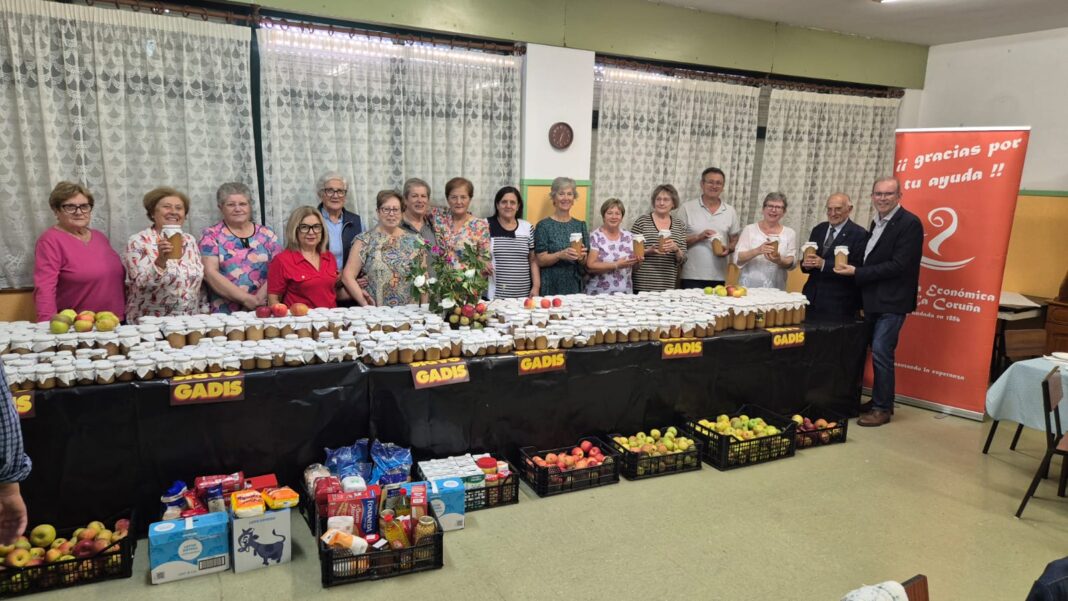 Tras haber participado hace unas semanas en la recogida de manzanas en la huerta del Pazo de Mariñán, la Asociación de Amas de Casa de Miño ha elaborado 530 tarros de compota, cada uno con un peso aproximado de 700 gramos, que ya han sido entregados a la Cocina Económica de A Coruña, entidad beneficiaria de esta acción altruista.