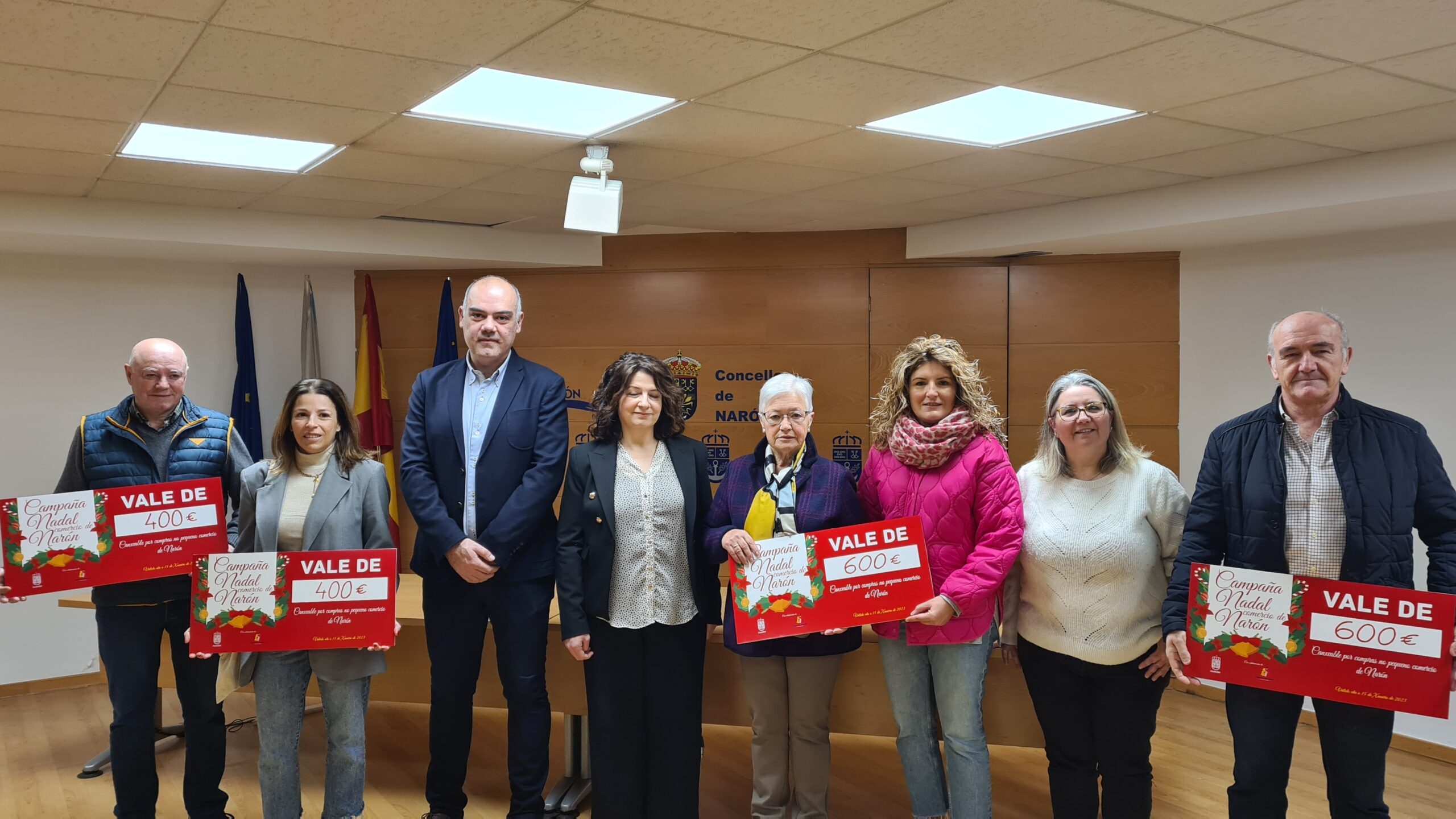 A alcaldesa da cidade, Marián Ferreiro, e o concelleiro de Promoción Económica, David Pita, entregaron hoxe xunto con Rocío Rodríguez e María Yáñez, presidenta e vogal, respectivamente, da Asociación de Comerciantes de Narón, os catro vales da “Campaña de Nadal Comercio de Narón”. Os vales de 600 euros foron para Dolores Mariño, veciña de Ferrol, e para Emilia Cagiao, de Narón, se ben os de 400 euros foron para as tamén naronesas Verónica Rañal e Otilia Miragalla. Ferreiro e Pita felicitaron ás gañadoras e agradecéronlles que apostasen polo comercio local para as súas compras. Así mesmo, destacaron o papel da Asociación de Comerciantes de Narón, que un ano máis colaborou co Concello nesta campaña.