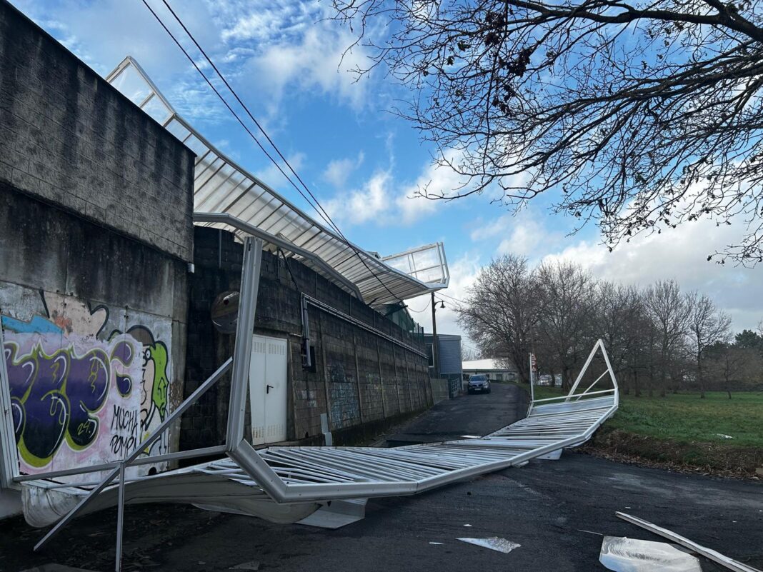 A forza do vento levantou na tarde de hoxe a cuberta da piscina municipal de Abegondo, situada en San Marcos.