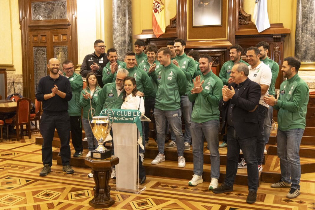 A alcaldesa recibiu en María Pita aos xogadores e corpo técnico do club de hockey tras a conquista da súa 11ª Copa do Rei