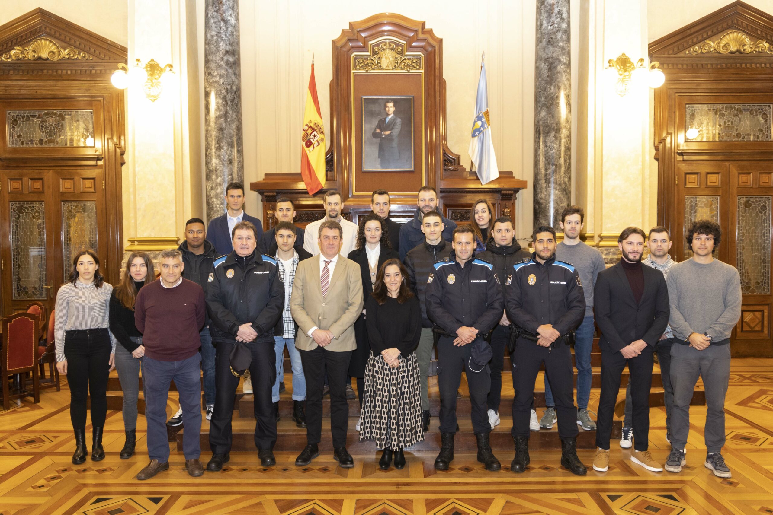 Un total de 22 novos axentes obtiveron praza nas últimas probas selectivas celebradas para reforzar o cadro de persoal da Policía Local da Coruña. Hoxe tivo lugar o acto de toma de posesión dos axentes, que foron recibidos pola alcaldesa, Inés Rey, no salón de plenos. Rey deulles a benvida e destacou a vocación de servizo público de todos aqueles que forman parte das Forzas e Corpos de Seguridade do Estado. Cinco dos novos axentes incorporaranse ao servizo de xeito inmediato e o resto o farán nos vindeiros meses tras pasar polo preceptivo período na academia de formación.