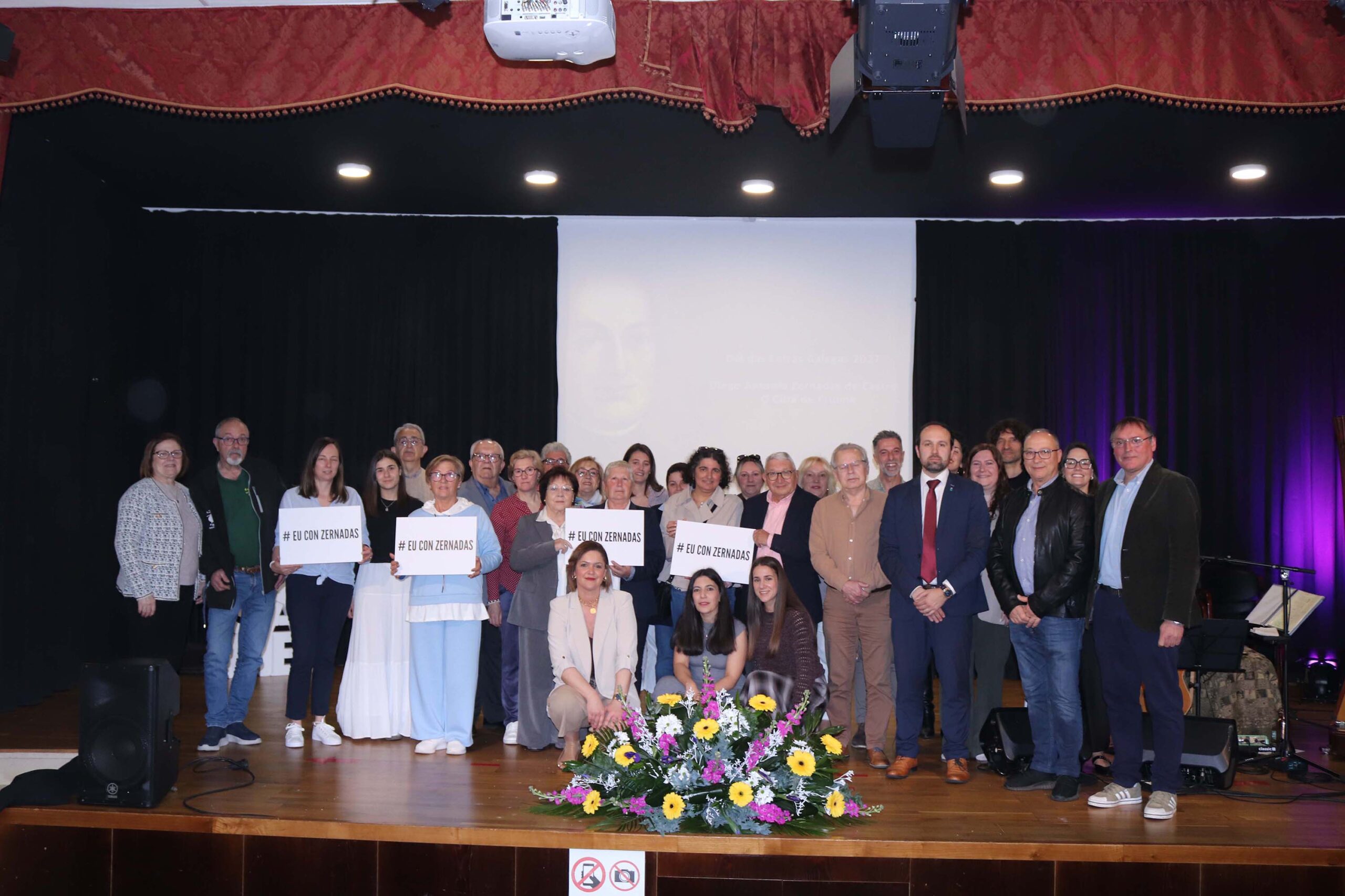 Ademais de sumarse á campaña #EuConZernadas, e antes de interpretar unha cantiga baseada nas “Décimas á Marquesa de Camarasa”, Gey López destacou que “nesta peza ides ver a defensa que Zernadas fixo da lingua nun período onde era extremadamente difícil. Eu son profesora de literatura aló no Barco e o seu nome aparece no temario dos séculos escurecidos, que non escuros porque obras literarias houbo. Sempre se fala de Xoán Manuel Pintos ou Añón, pero houbo persoas antes como Zernadas que facilitaron ese camiño para eles e para os posteriores Rosalía, Curros, Pondal… Creo que moitas desas figuras recibiron xa o seu recoñecemento e agora falta Zernadas de Castro e creo que foi moi valente facer estas composición nunha época na que no resto da península estaba de moda meterse co galego”.