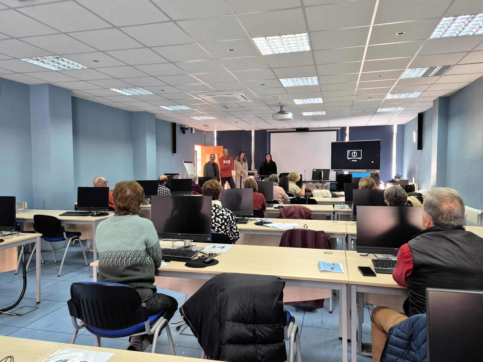 O alcalde, Daniel Pérez, e a concelleira de Terceira Idade, Mar Eirís, achegáronse ata as Escolas do Xardín Agra de Caldas para dar a benvida ás máis de vinte persoas que participan no taller, que se concentra en catro xornadas entre esta semana e a vindeira. Daniel Pérez convidou ao “alumnado” a aproveitar a formación, que, entre outros aspectos, inclúe o correo electrónico, aplicacións como Sergas Móbil ou Whatsapp, a Chave 365, uso de máquinas de quendas ou caixeiros automáticos.