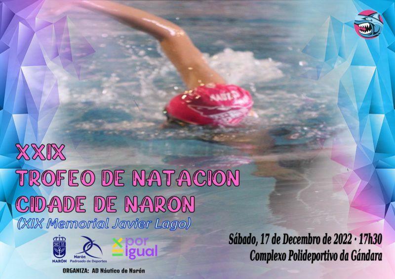 A piscina do complexo Polideportivo municipal da Gándara acollerá este sábado, día 17, a vixésimo novena edición do “Trofeo de Natación Cidade de Narón” e a décimo novena do “Memorial Javier Lago”. A alcaldesa, Marián Ferreiro, e o edil de Deportes, José Oreona, presentaron o evento acompañados polo presidente e a adestradora da Agrupación Deportiva Náutico de Narón, Amando Guerrero e Arantza Rivas.