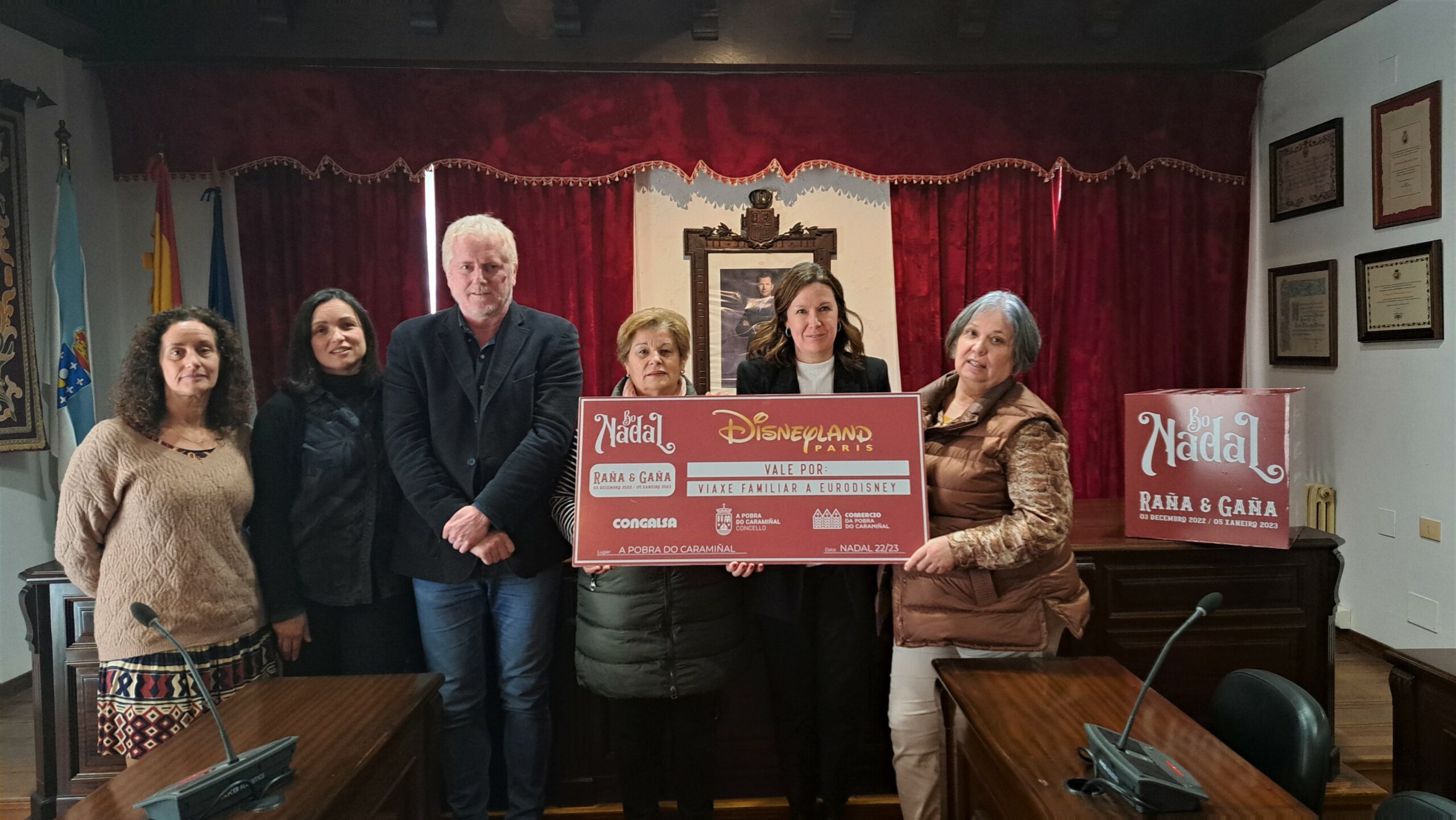 O cheque regalo coa viaxe familiar para catro persoas con destino a Eurodisney xa está nas mans da súa gañadora: María Dolores Rosende Piñeiro, veciña da Pobra. A entrega foi efectuada polo alcalde, Xosé Lois Piñeiro (Nós Pobra); a concelleira da Promoción Económica, Charo Varela (Nós Pobra); a directora das relacións externas de Congalsa, Isabel Cañas; e as representantes da tenda Sport Maniotas, onde apareceu o rasca premiado, Montse Santiago e Dolores Romero.