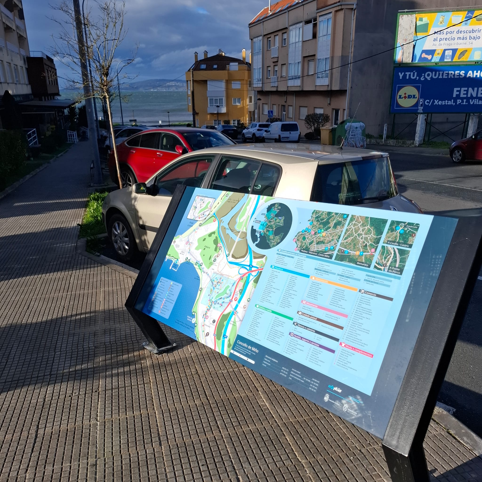 Os paneis, instalados co apoio de Promoción Económica da Deputación da Coruña, recollen información sobre tendas de alimentación, comercios, establecementos de servizos, estática, saúde, así como locais de hostalería e restauración.