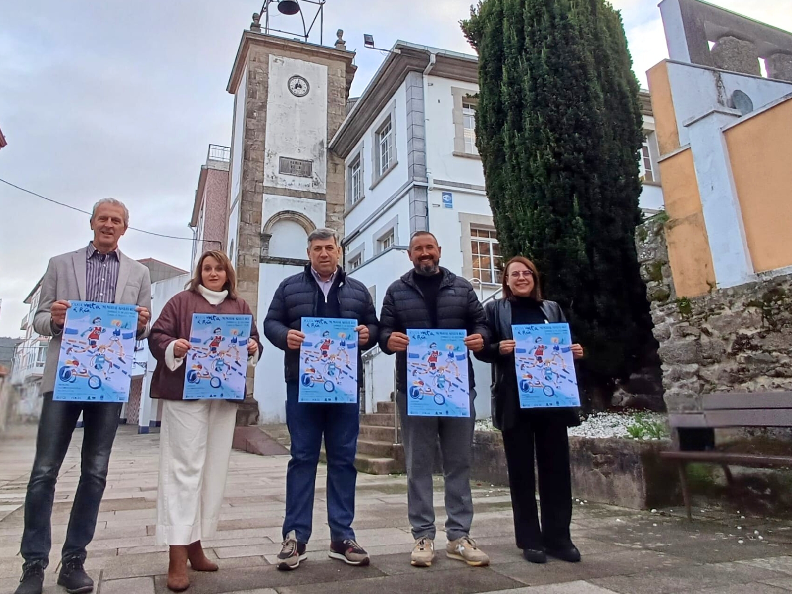 O alcalde de Neda, Ángel Alvariño, e os responsables de Deportes dos concellos co-organizadores -a nedense a Ángeles Puentes; a fenesa Alba García; o ferrolán Ricardo Aldrey, e o naronés Ibán Santalla- presentaban esta mañá ao pé da Torre do Reloxo o cartel oficial, realizado pola ilustradora Blanca Escrigas, e avanzaban as liñas mestras da competición, que se disputará na mañá do domingo 14 de decembro.