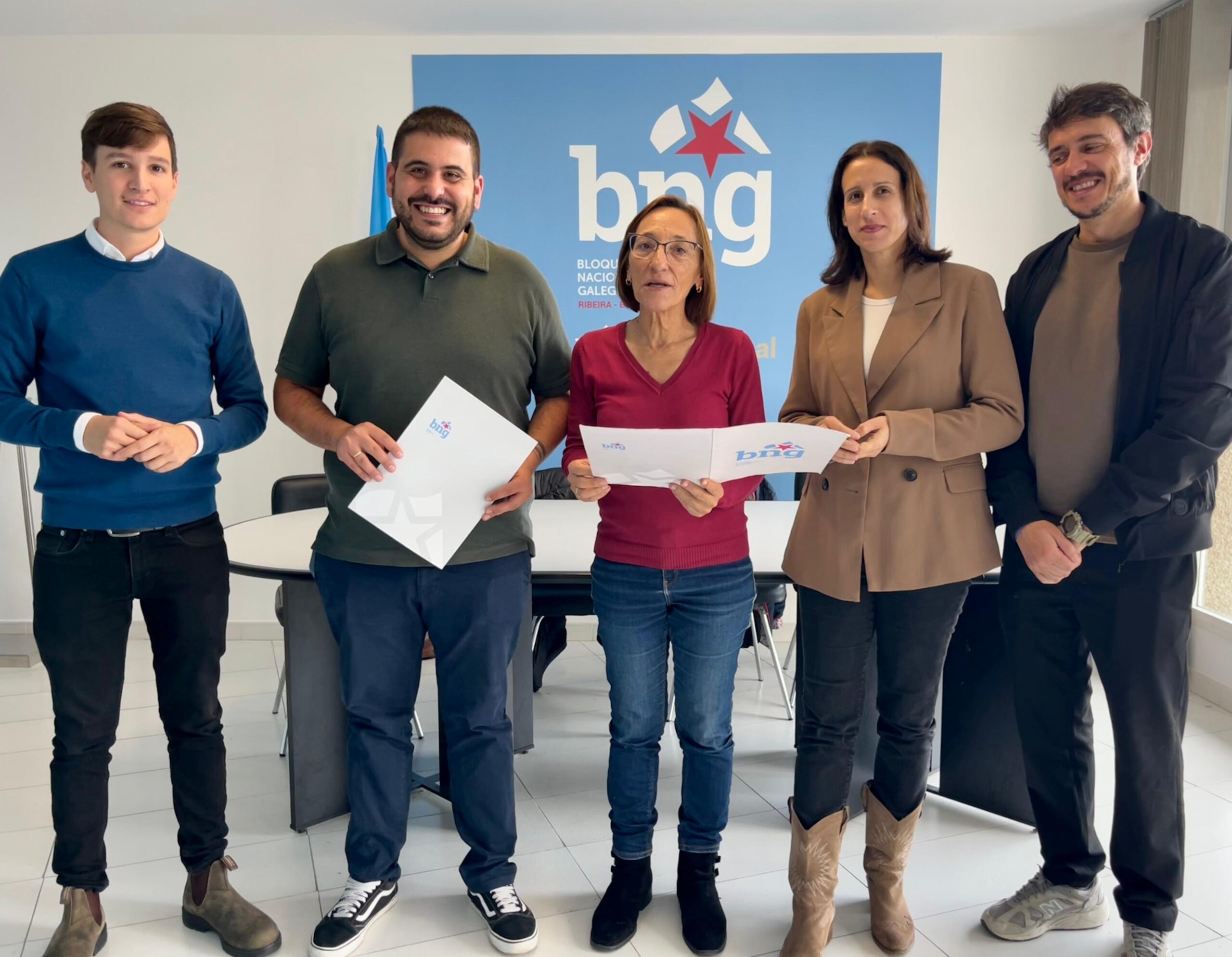 O Bloque Nacionalista Galego do Barbanza compareceu hoxe ante os medios de comunicación para presentar as emendas que a organización nacionalista vén de rexistrar aos Orzamentos da Xunta de Galicia para o ano 2026. No acto participaron o responsable comarcal, Francisco Rei; a deputada do BNG no Parlamento galego, Rosana Pérez; os voceiros nacionalistas Luís Pérez e Raquel Suárez; e o concelleiro de Ribeira, Xabier Vidal.