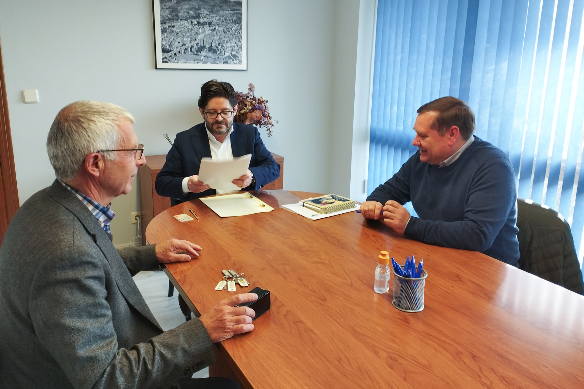 Juventino Trigo e a propiedade subscribiron esta mañá perante notario os documentos de compra-venda
