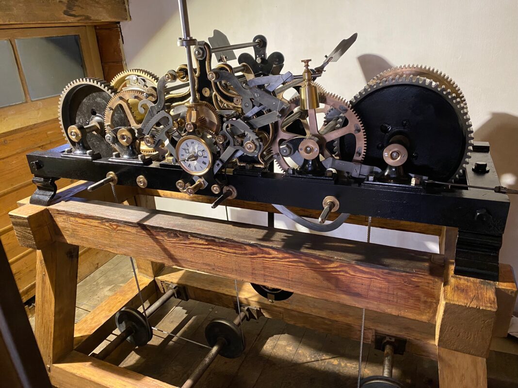O reloxo, que data do século XIX, revisouse minuciosamente co obxectivo de recuperalo, de forma integral, tras anos de desgaste. Baseándose no primeiro diagnóstico, coa análise dos mecanismos e a detección das pezas máis deterioradas, levouse a cabo o desmonte completo do reloxo e tamén a limpeza do mesmo, para suprimir a graxa e o ferruxe acumulados polo paso do tempo.