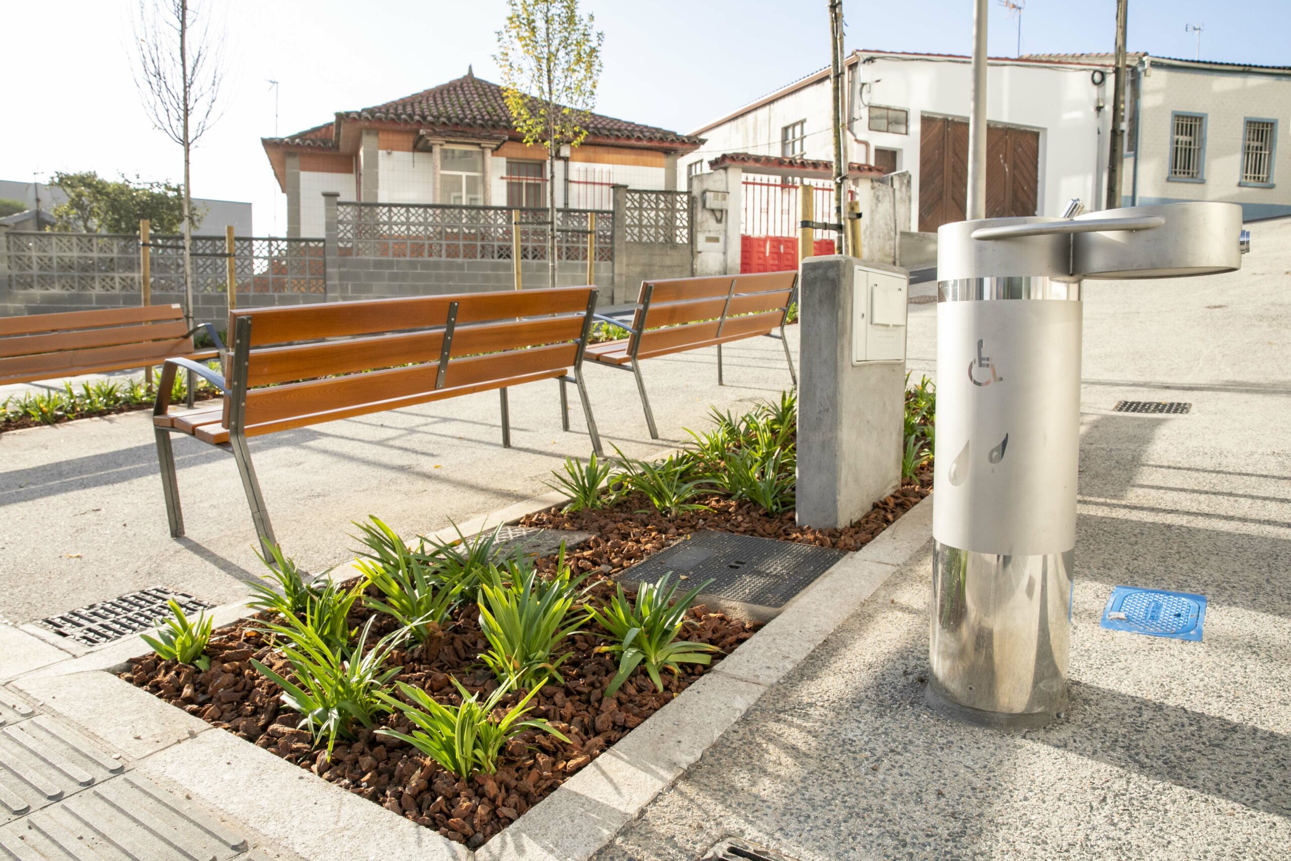 En paralelo, leváronse a cabo diversas intervencións de humanización, coa colocación de novo mobiliario urbano para o uso e gozo das veciñas e veciños, e tamén traballos de xardinería nas áreas verdes próximas. Ademais, executáronse obras na rede de sumidoiros e recollida de augas pluviais. As novas quenllas están situadas na beira dereita da rúa, no sentido cara á rúa San Pedro de Visma.