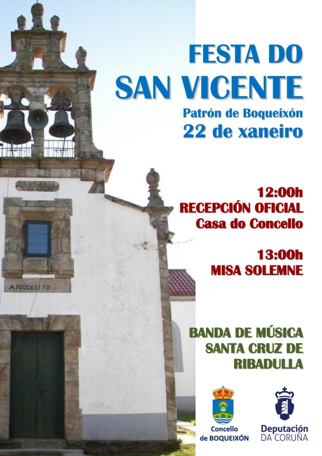 O Concello de Boqueixón celebra este domingo a Festa do San Vicente, patrón municipal, coa tradicional recepción á veciñanza
