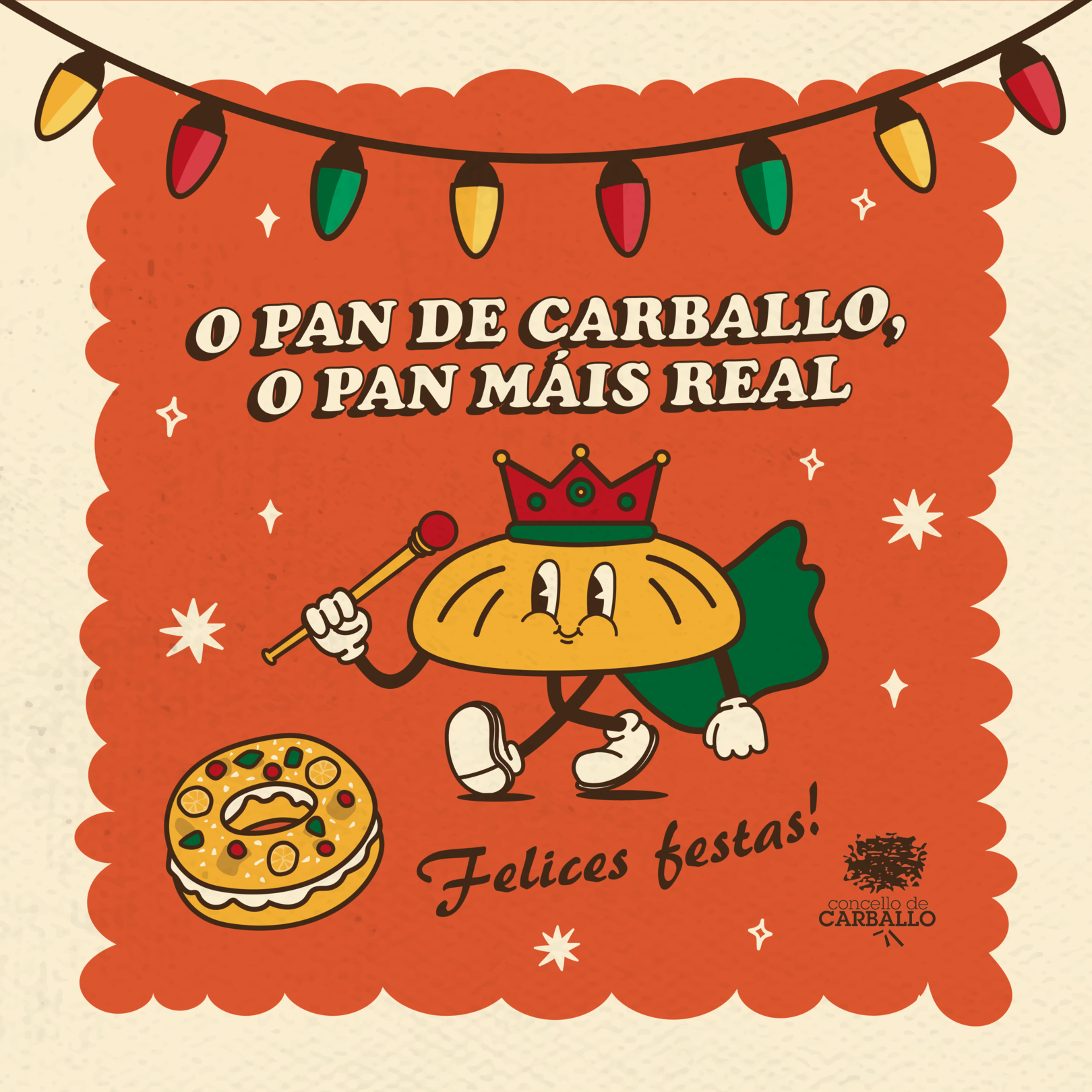 En todos os establecementos do sector podes ver estes días carteis co simpático molete que protagoniza a campaña Máis de Carballo que o pan ataviado coa coroa real, e tamén a partir de hoxe atoparalo nas redes sociais do Concello de Carballo.