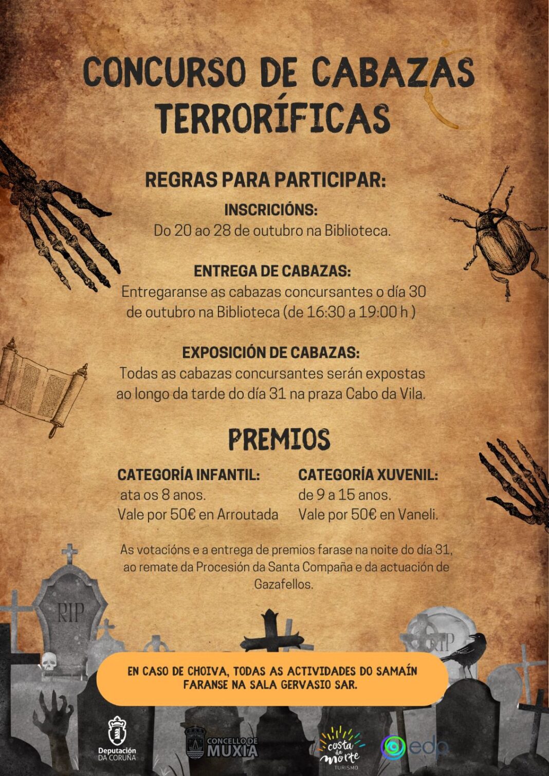 Como novidade, este ano celebrarase tamén o Concurso de Cabazas Terroríficas, que busca implicar a veciñanza —especialmente a rapazada— na creación de cabazas decoradas con imaxinación e espírito de Samaín.