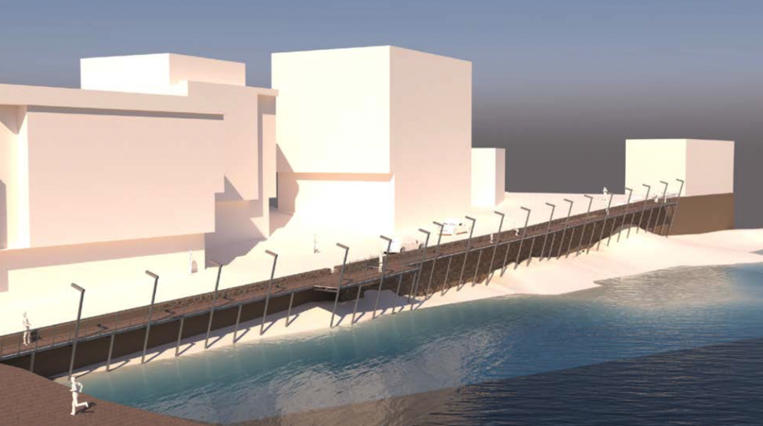 · O proxecto presentado polo goberno local propón a construción dun sobreancho sobre a ribeira, similar ao paseo de madeira do porto.