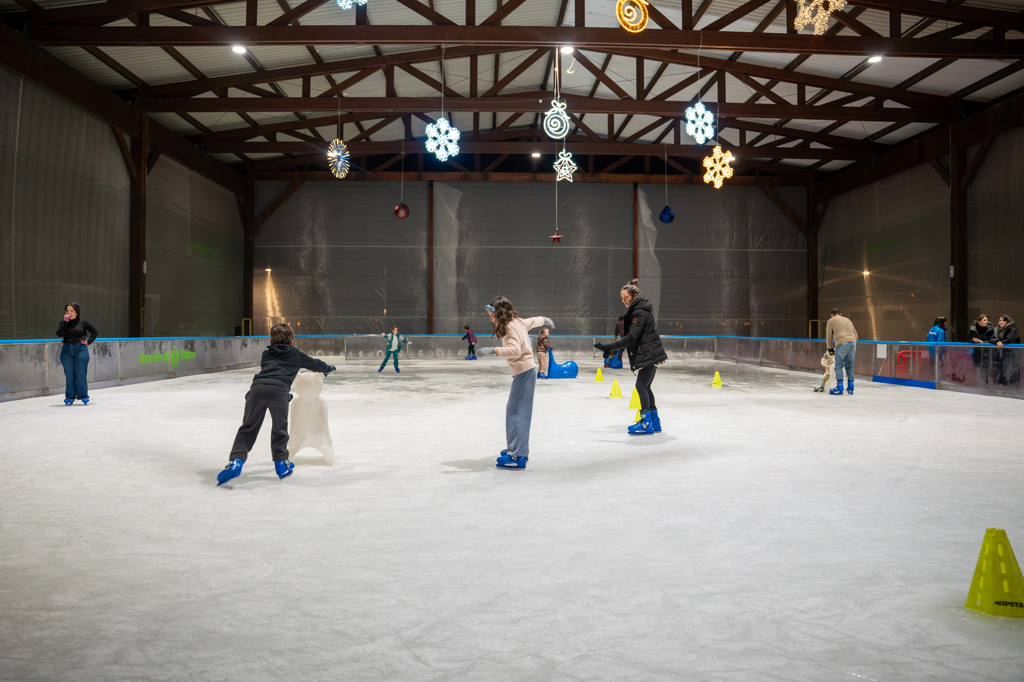 O acceso á pista de xeo durante media hora ten un custe de 6 euros e inclúe o aluguer de patíns. É obrigatorio levar luvas.