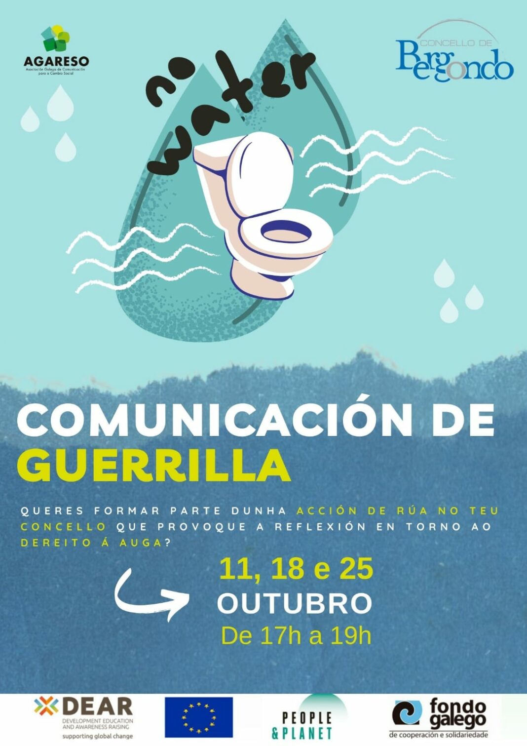 Esta actividade, impartida pola Asociación Galega de Comunicación para ou Cambio Social (AGARESO), levará a cabo os martes 11, 18 e 25 de outubro, en horario de 17 a 19 horas, na Casa da Cultura bergondesa. O tema proposto para reflexionar neste caso será a sustentabilidade vinculada coa auga e a auga como dereito humano fundamental.