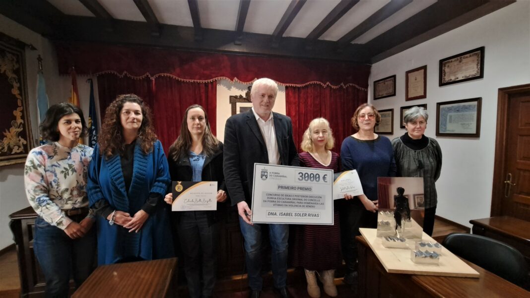 Isabel Soler Rivas e Columba Bello Bugallo recibiron neste 8 de febreiro os premios do concurso de ideas para a escultura en homenaxe ás vítimas da violencia de xénero convocado pola Concellaría da Igualdade da Pobra do Caramiñal.
