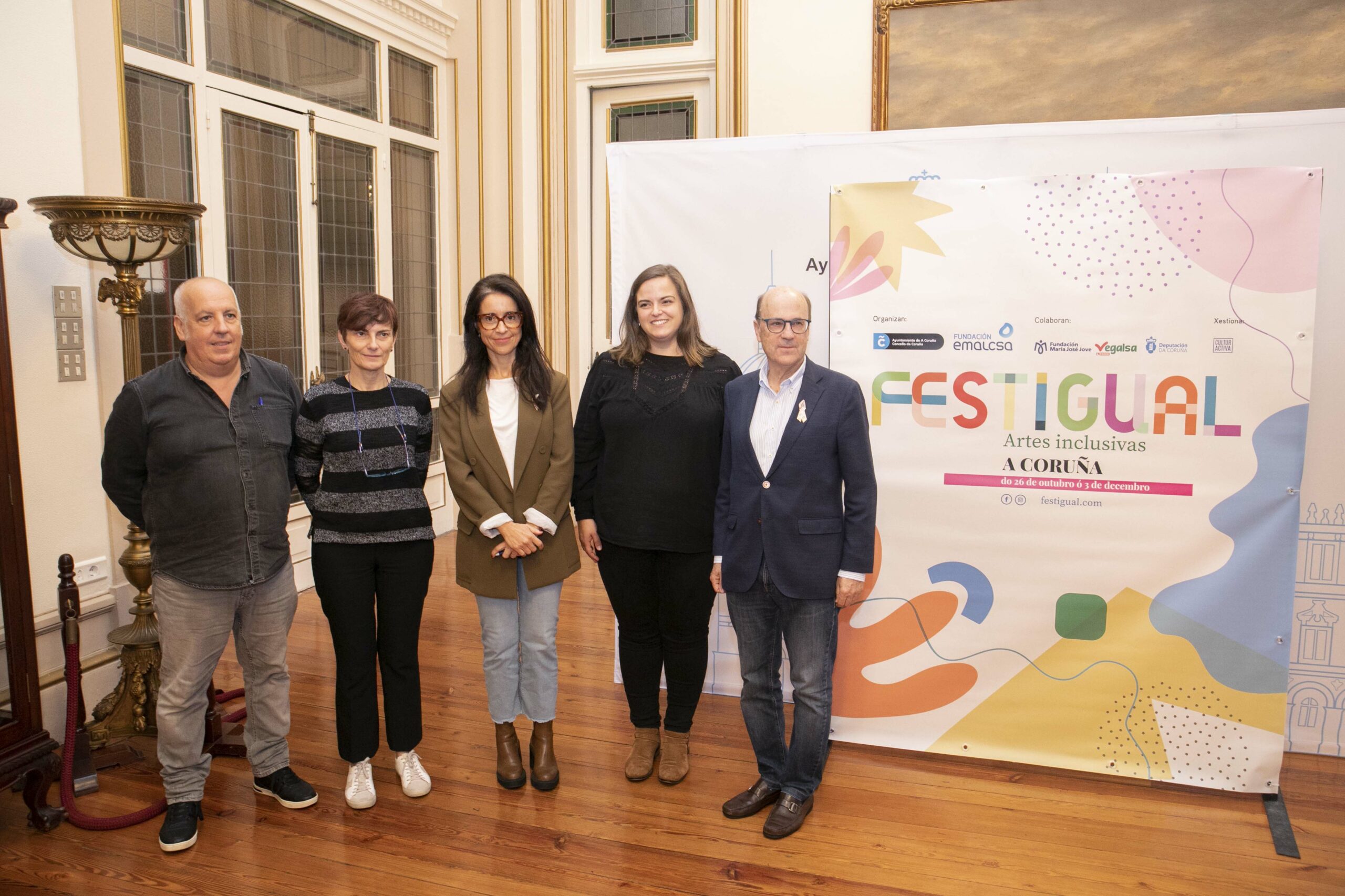Na organización do Festigual colaboran o Concello da Coruña, a Fundación Emalcsa, a Deputación da Coruña, Vegalsa e a Fundación María José Jove.