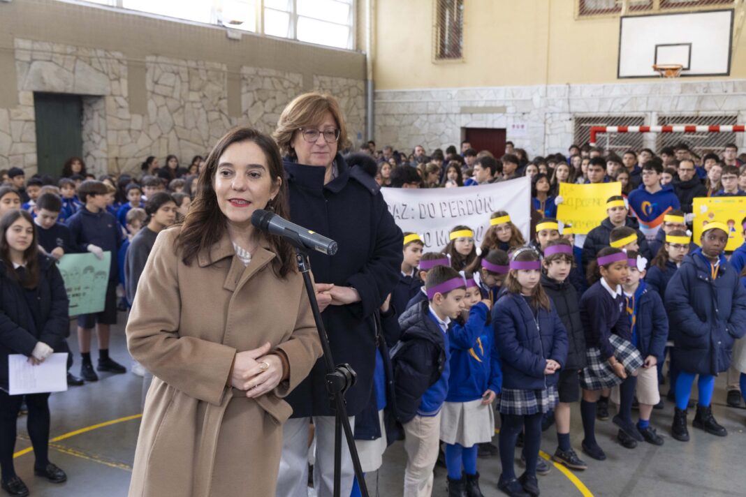 A alcaldesa e o concelleiro de Educación participaron nun acto simbólico que apelou ao compromiso coa convivencia e coa educación en valores desde a escola