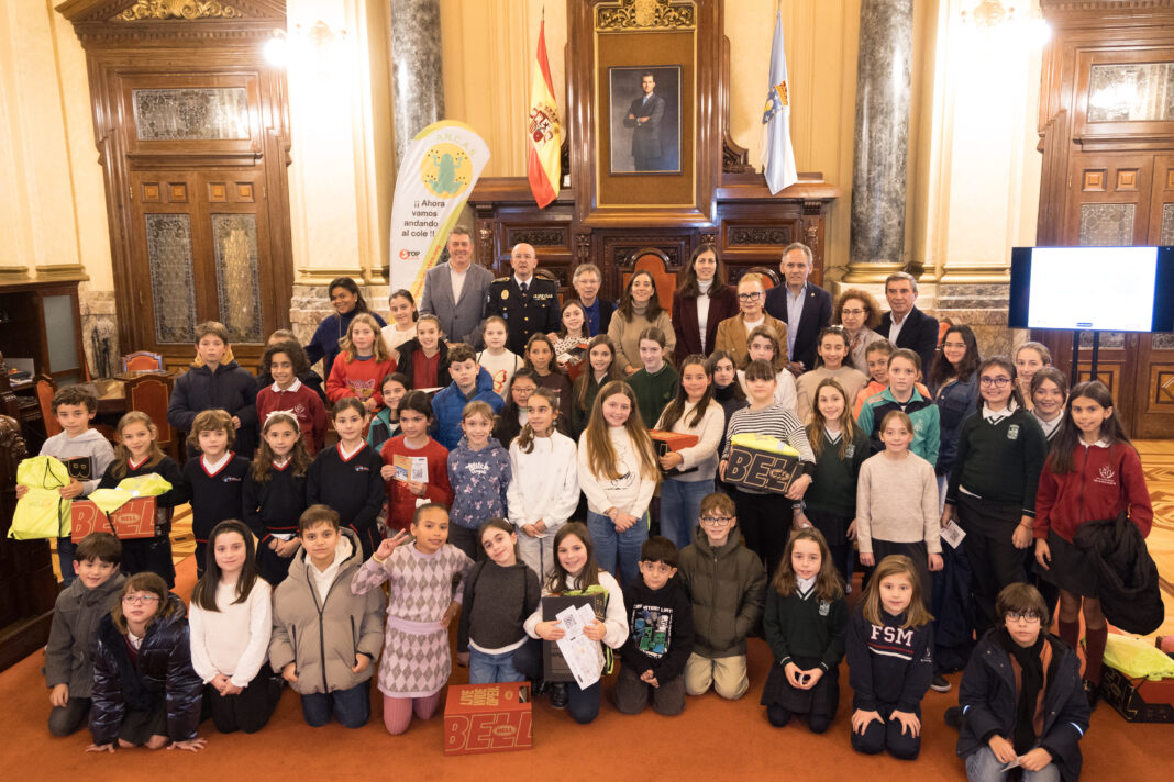 A alcaldesa, Inés Rey, recibiu as nenas e nenos que gañaron o certame deste ano, organizado pola asociación STOP Accidentes
