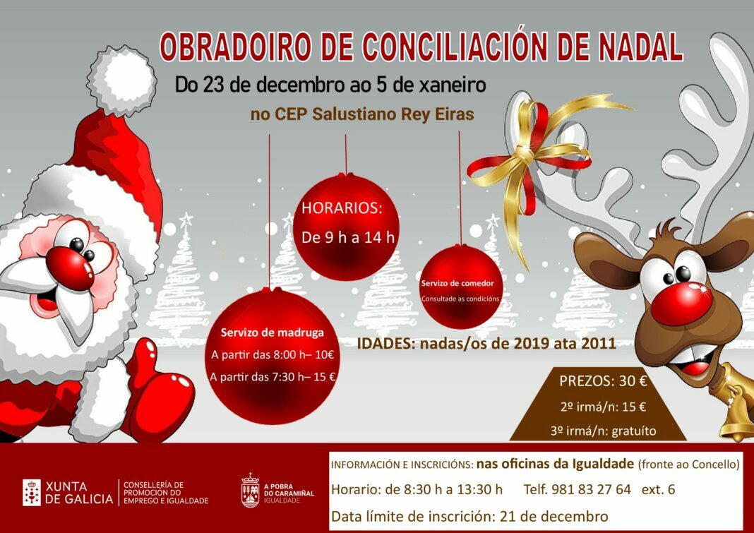 Na súa firme aposta por favorece-la conciliación, o Concello da Pobra do Caramiñal oferta un ano máis o obradoiro do Nadal dirixido a crianzas da infantil e da primaria.