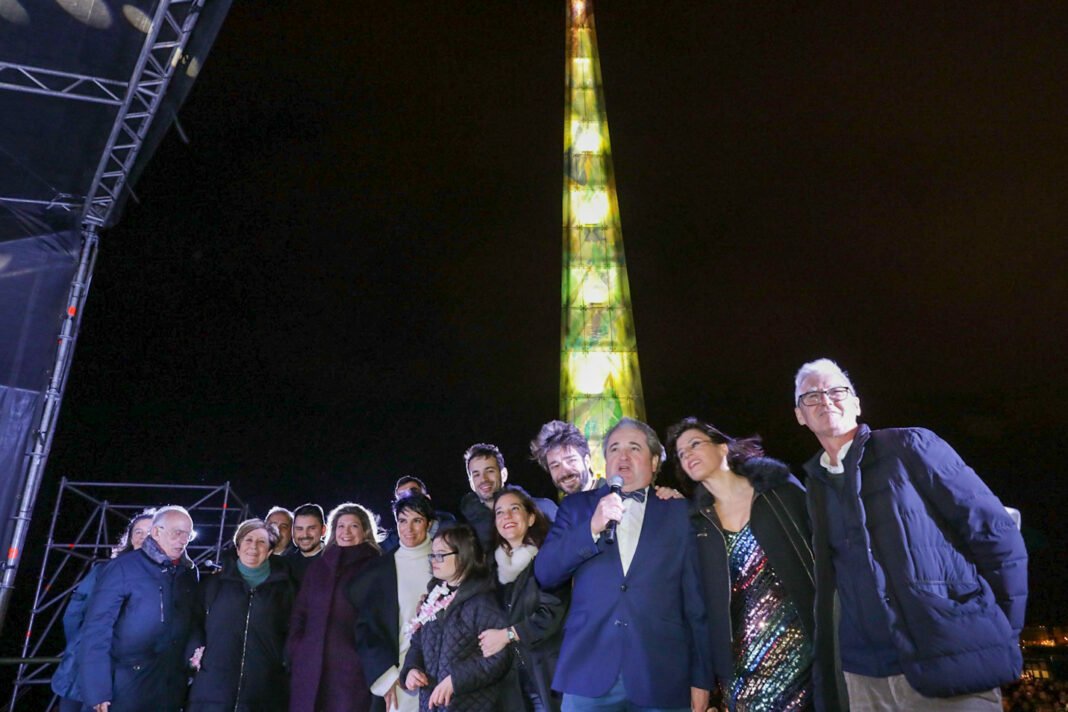 Representantes de 12 entidades, institucións e empresas acenderon o obelisco xunto coa alcaldesa, Inés Rey, para dar comezo ao 2023 de forma anticipada cun evento que reuniu a máis de 3.500 persoas