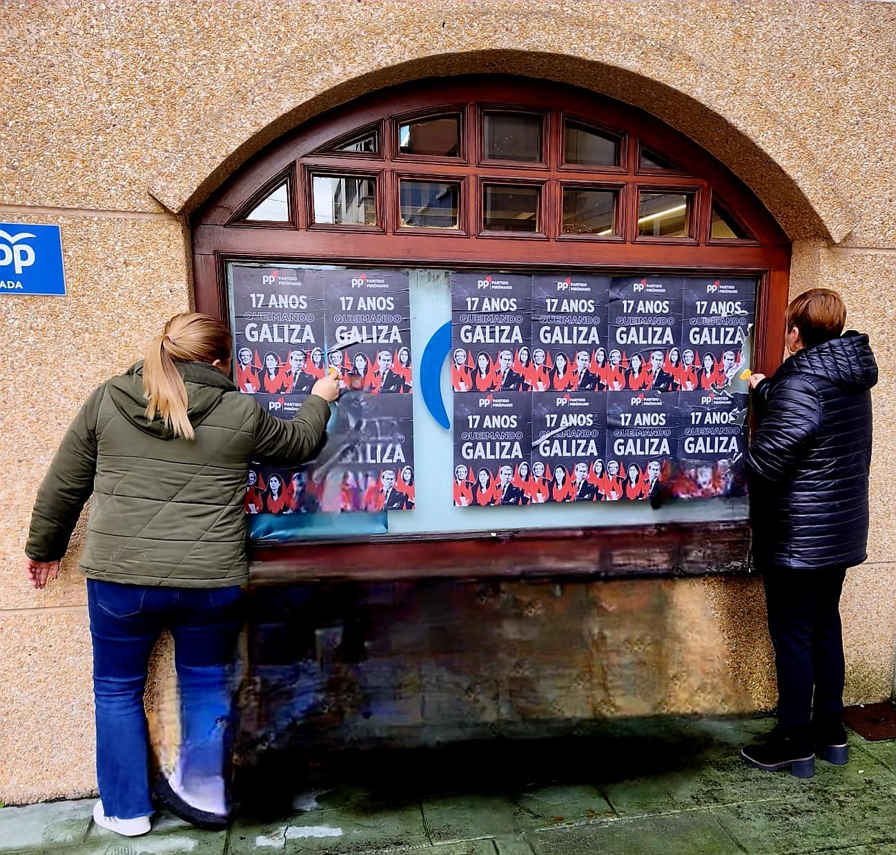 Desde o grupo municipal do Partido Popular, piden a condena absoluta destes actos vandálicos por parte de todos os grupos políticos,expresando a súa repulsa #ante actos antidemocráticos como estes e posicionándose #ante o respecto pola diversidade ideolóxica e a elección do cidadán nas urnas.