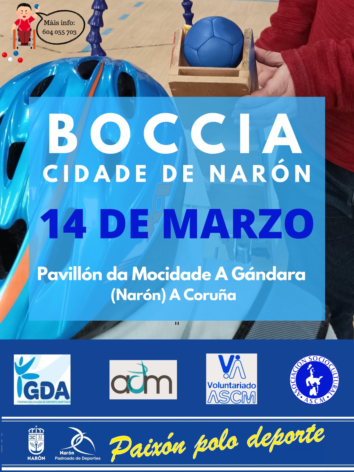 Narón celebra este sábado, 14 de marzo, a partir das 9:30 horas unha nova edición do torneo Boccia Cidade de Narón, unha cita co deporte adaptado que terá lugar no Pavillón da Mocidade da Gándara. A competición está organizada pola Federación Galega de Deporte Adaptado, coa colaboración do club ADM Ferrol, a Asociación Sociocultural ASCM e o Padroado de Deportes do Concello de Narón..