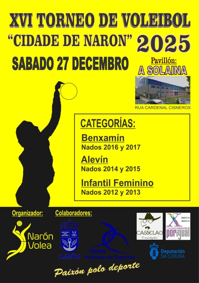 O evento está organizado polo Club de Voleibol Narón Volea, coa colaboración do Padroado de Cultura do Concello de Narón e da Deputación da Coruña, entidades que apoian esta iniciativa dirixida á promoción do deporte de base e á difusión de hábitos de vida saudables entre a infancia.