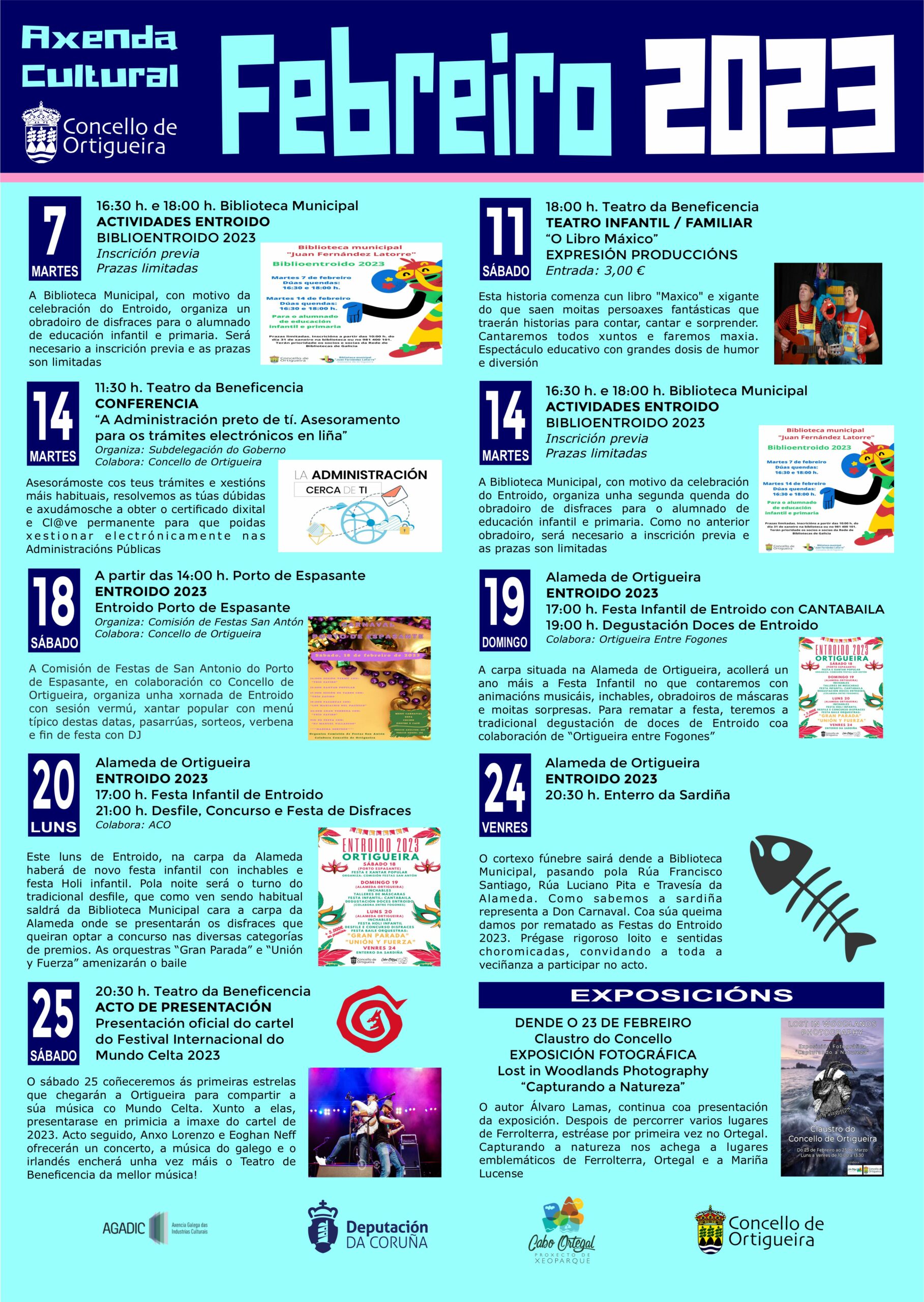 O Concello de Ortigueira vén de presentar a súa axenda cultural para este mes de febreiro, que terá como foco central o ‘Entroido 2023’.