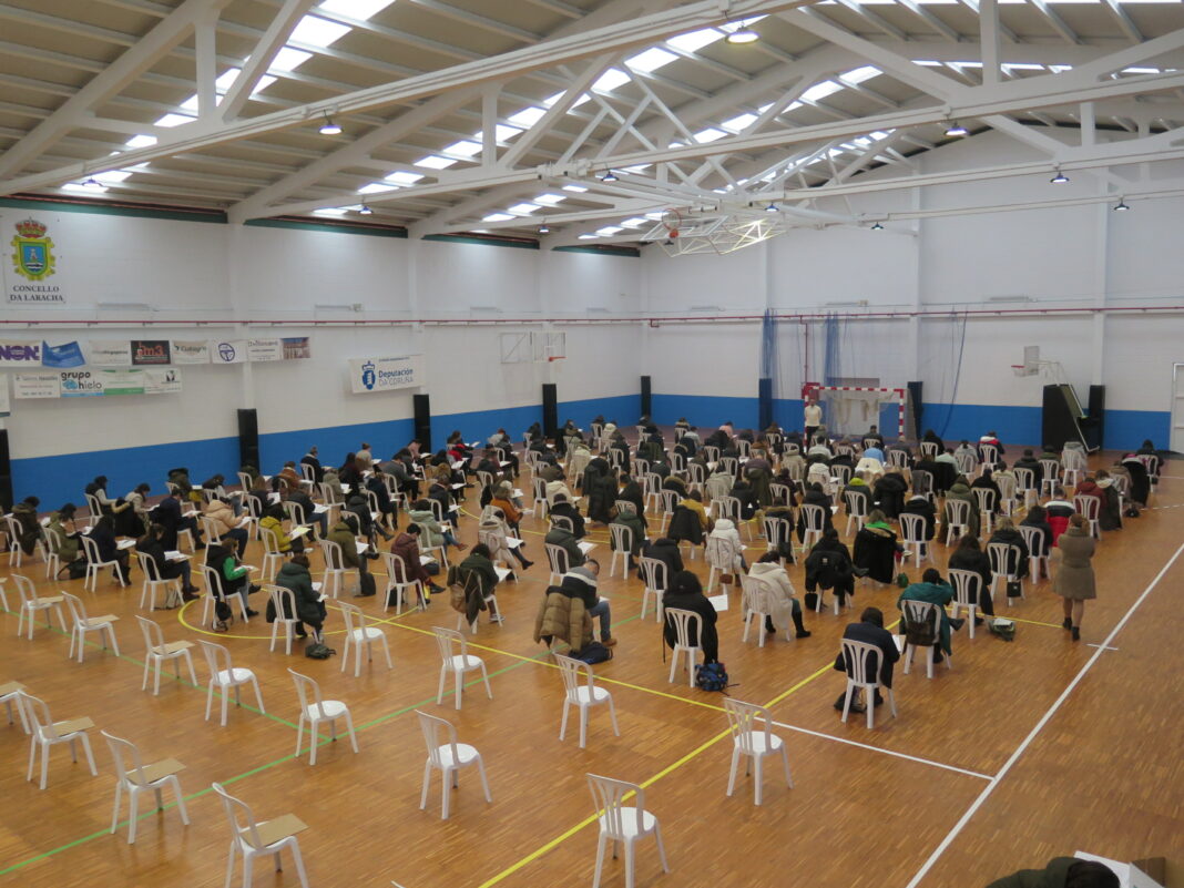 O pavillón Municipal da Laracha acolleu hoxe o primeiro exercicio do procedemento selectivo para a cobertura en propiedade de dúas prazas de auxiliar administrativo mediante o sistema de oposición libre.