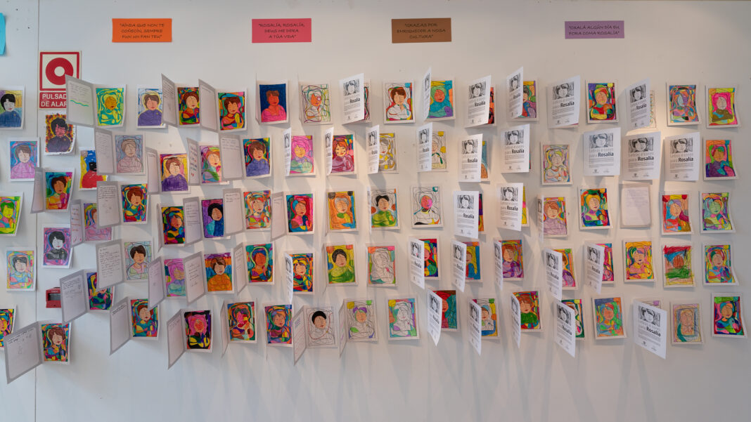 Unha investigación da historiadora Sagrario Abelleira revelou en 2021 que Rosalía Castro (poñémolo sen o “de” porque era como ela asinaba) naceu un día 23 de febreiro e non o 24 como sempre se creu. Por iso, desde o ano pasado a homenaxe á autora ten a xornada de hoxe marcada no calendario como data oficial do seu aniversario, e van 186. San Sadurniño sumouse ao tributo cun acto que se desenvolveu na Casa da Cultura no que participou a rapazada do CPI, o grupo de cantos de taberna e varias das persoas usuarias do Centro de Día, quen ademais tamén contribuíron ao grande mosaico artístico “Letras e cores para Rosalía”. A través desta última iniciativa, o Concello convidou á veciñanza a escribir lemas dedicados á autora e a darlle cor a un deseño do debuxante Juanlu Nacha. En total recibíronse 250 tarxetas que poden admirarse e lerse no recibidor do centro cultural.