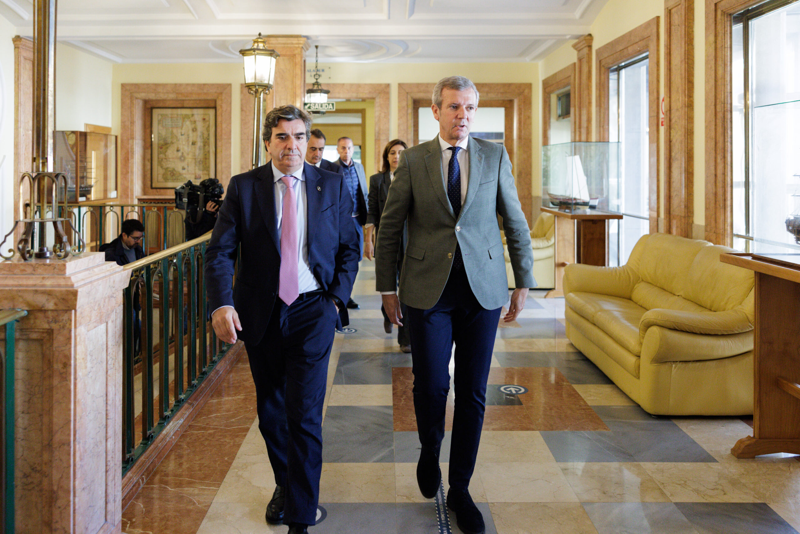 O presidente da Xunta, Alfonso Rueda, acompañado da conselleira de Medio Ambiente e Cambio Climático, Ángeles Vázquez, mantivo hoxe un encontro co presidente e o director da Autoridade Portuaria da Coruña, Martín Fernández e Juan Diego Pérez, e co CEO da compañía Exolum, Javier Goñi, para avaliar o proxecto que a empresa promotora desenvolverá no Porto Exterior en Arteixo. Segundo salientou o presidente, esta iniciativa representa un avance decisivo para o tecido industrial galego e para o futuro enerxético da comunidade: “Serve para consolidar a aposta por un Porto Exterior que están demandando empresas que necesitan esa situación xeográfica, esas instalacións e esa accesibilidade”, apuntou Rueda.