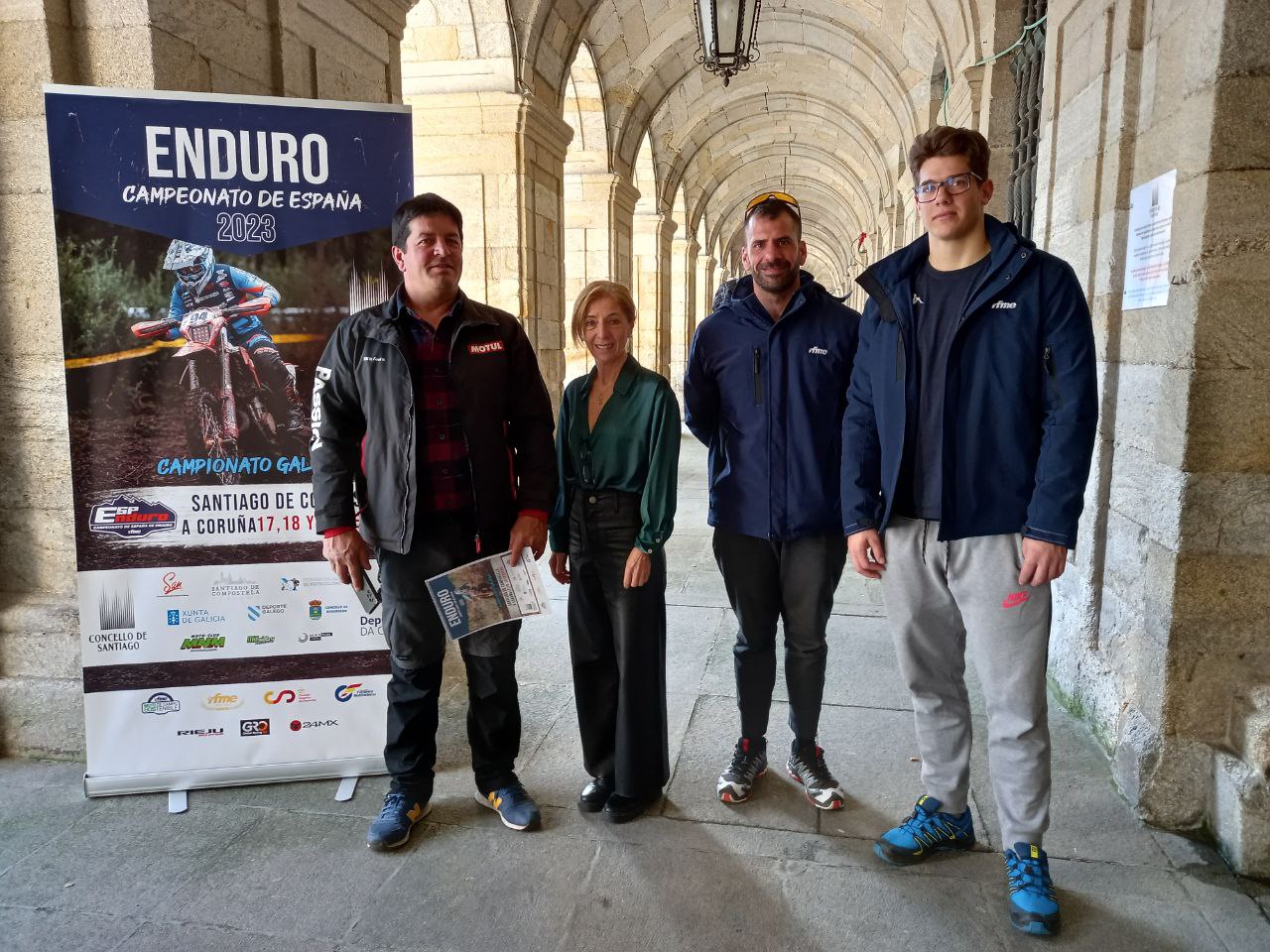 A concelleira de Deporte, Esther Pedrosa, presentou esta proba nunha rolda de prensa na que tamén participou o presidente da Federación Galega de Motociclismo, José Camba, o piloto Enric Francisco e o coordinador da Comisión de Enduro, Víctor de la Guardia.